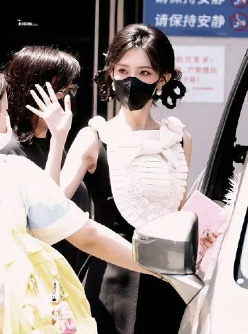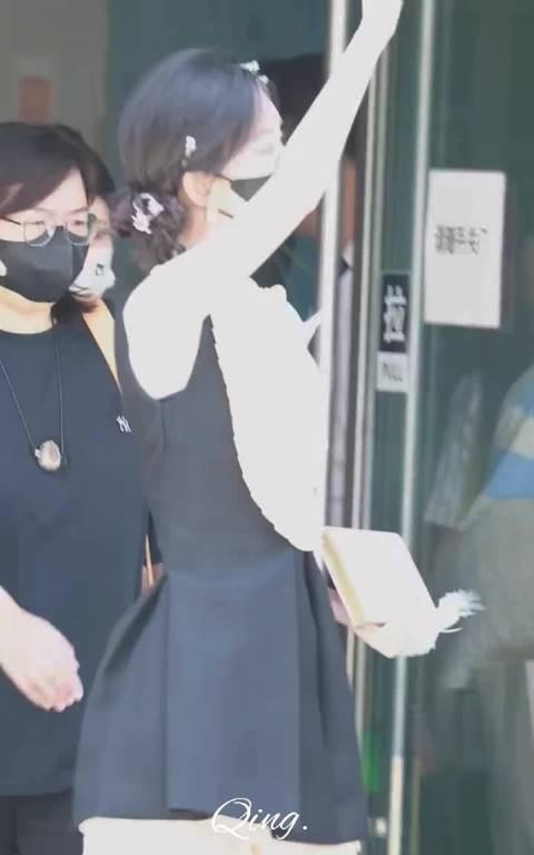 孟子义《你好星期六》上班,爱心丸子头黑白蛋糕裙,把手挥舞得像雨刮器似的回应粉丝。