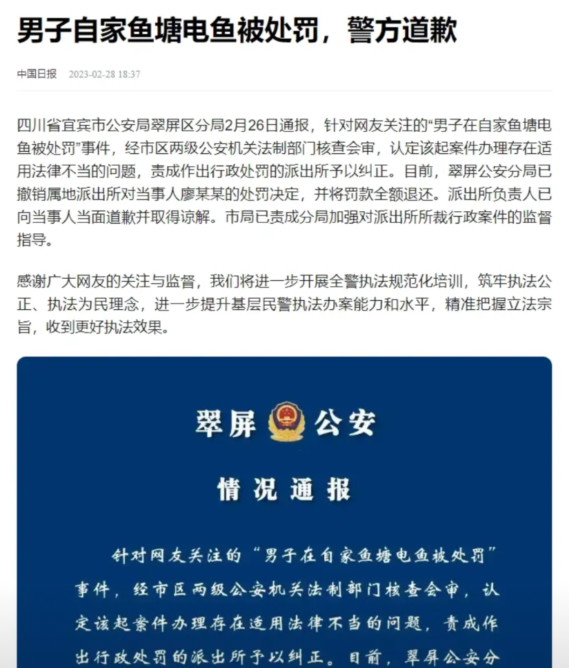 去年还是今年不是有个新闻报道,电自己家的鱼塘被人举报被捉的吗?闹到最后,好像人放回去了,没收了电鱼工具