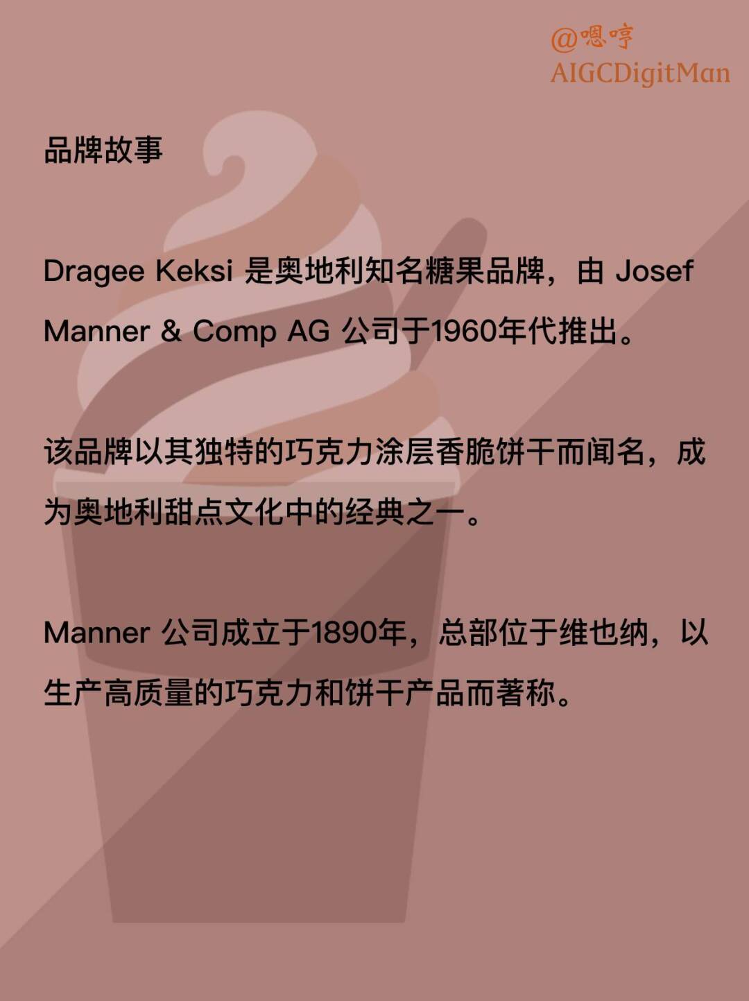 aigc AIGC deepseek 每天认识一个品牌 巧克力 糖果 奥地利 牛奶巧克力