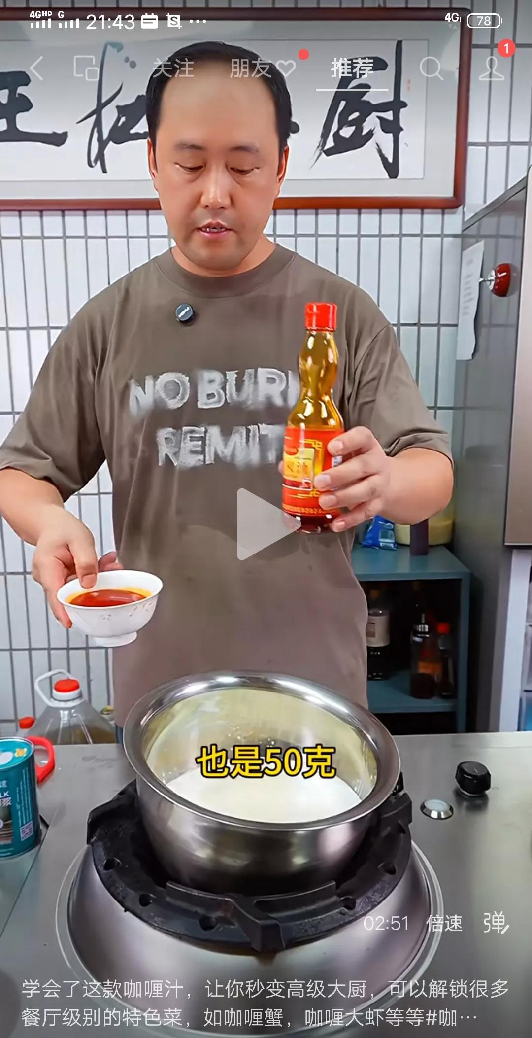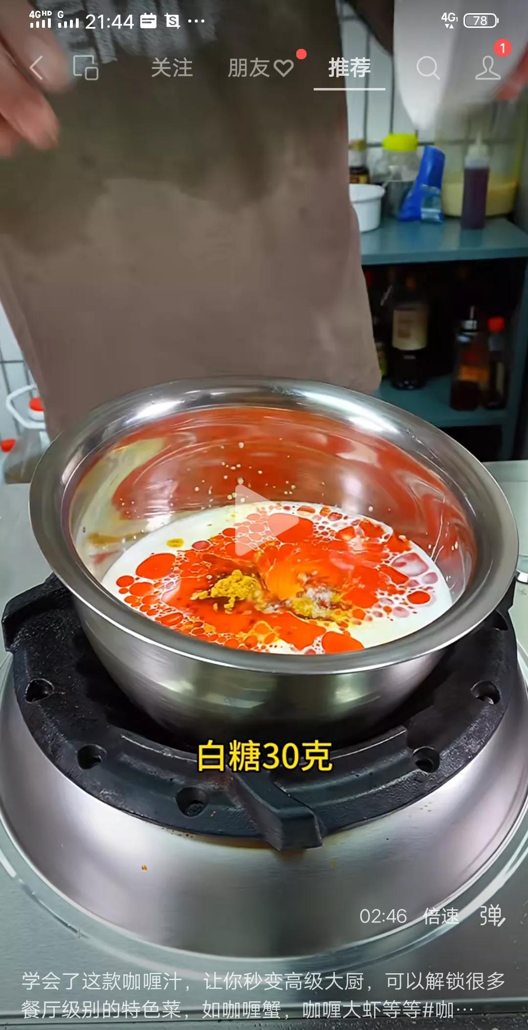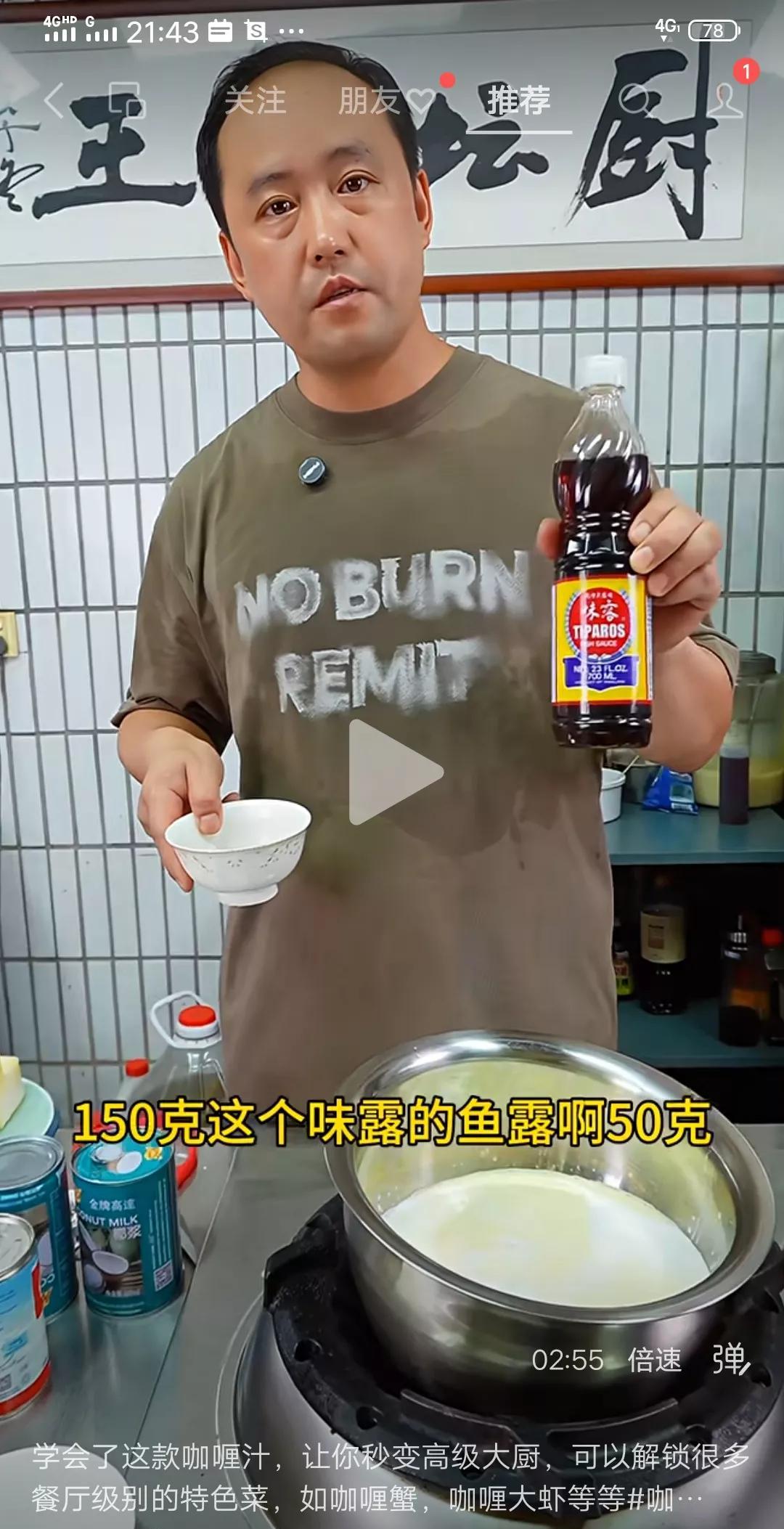 咖喱制作流程 一、准备一个铝盆和一个砂锅,先把下列材料倒入铝盆。 410克三花奶粉, 400毫升高达椰奶 雀巢淡奶油150克, 味漏的鱼露50克, 咖喱粉30克, 白冰糖30克, 白糖30克, 味精40克, 鸡粉30克, 正红咖喱胆50克, 芝麻油10克, 白胡椒粒5克, 小茴香3克, 香叶5片, 草果2颗, 高汤400克, 二、砂锅内放入 黄油400克, 洋葱200克, 100克大蒜, 100克香茅草, 20克柠檬叶, 三、用小火把砂锅内黄油熬化,把刚才调好的料倒入砂锅,用中火把它烧开,边烧边搅,2分钟即可,关火冷却10分钟,打掉料渣,把咖喱汁过滤出来。