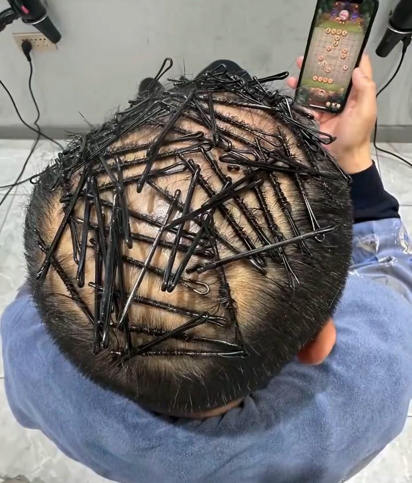 大哥是真犟,这点头发还得烫一下,纯属是难为理发师,收个100块钱不多吧~