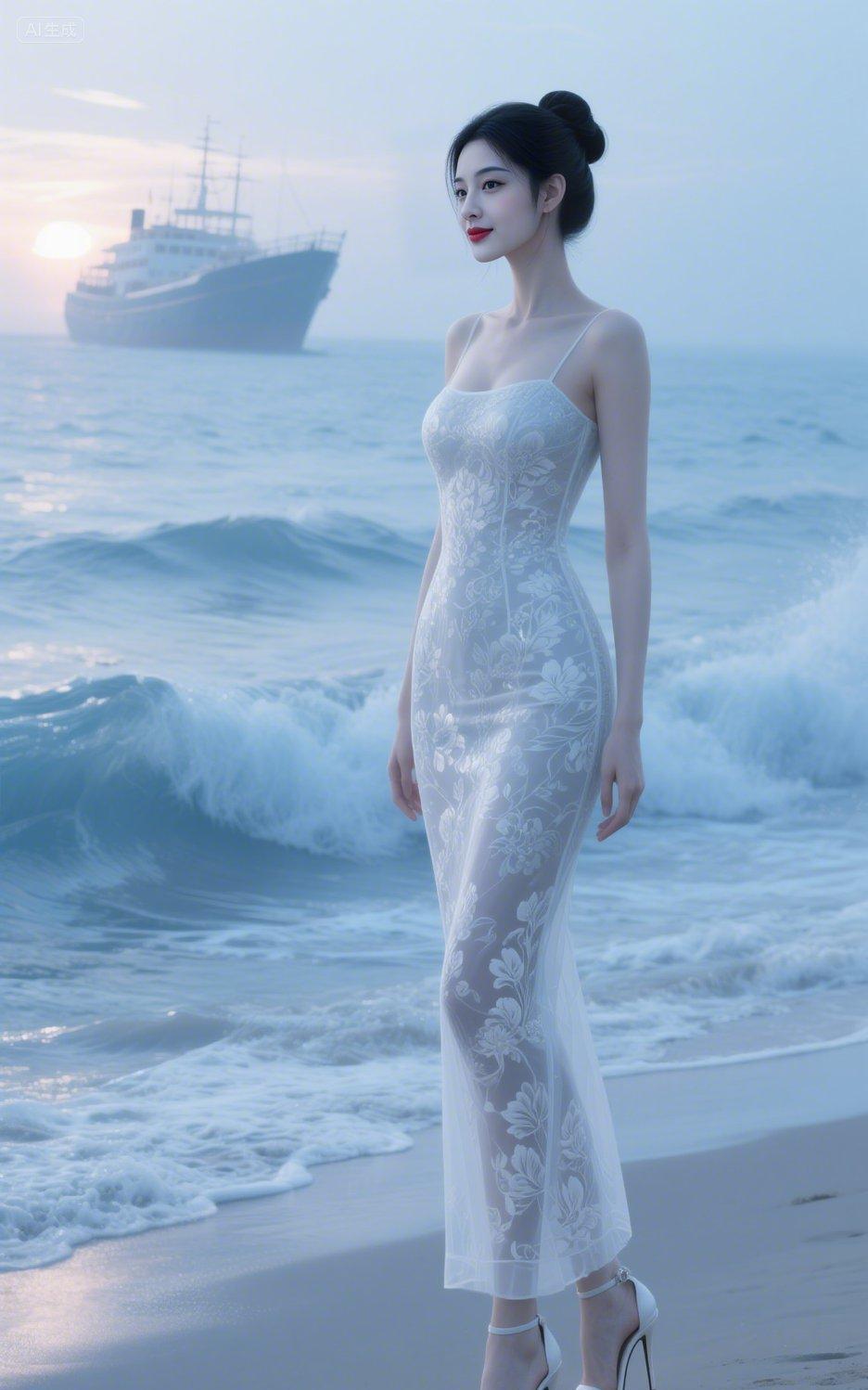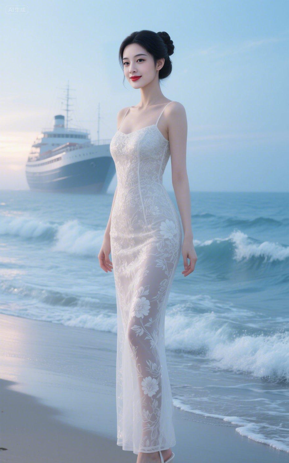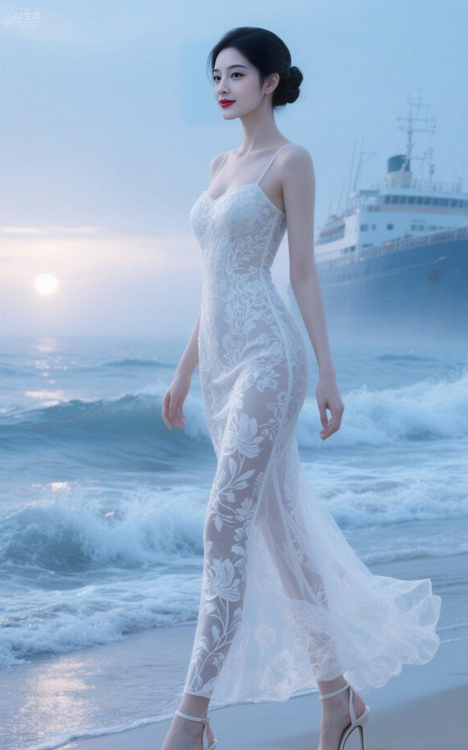 #有哪些美女让人过目难忘?# 海边连衣裙美女