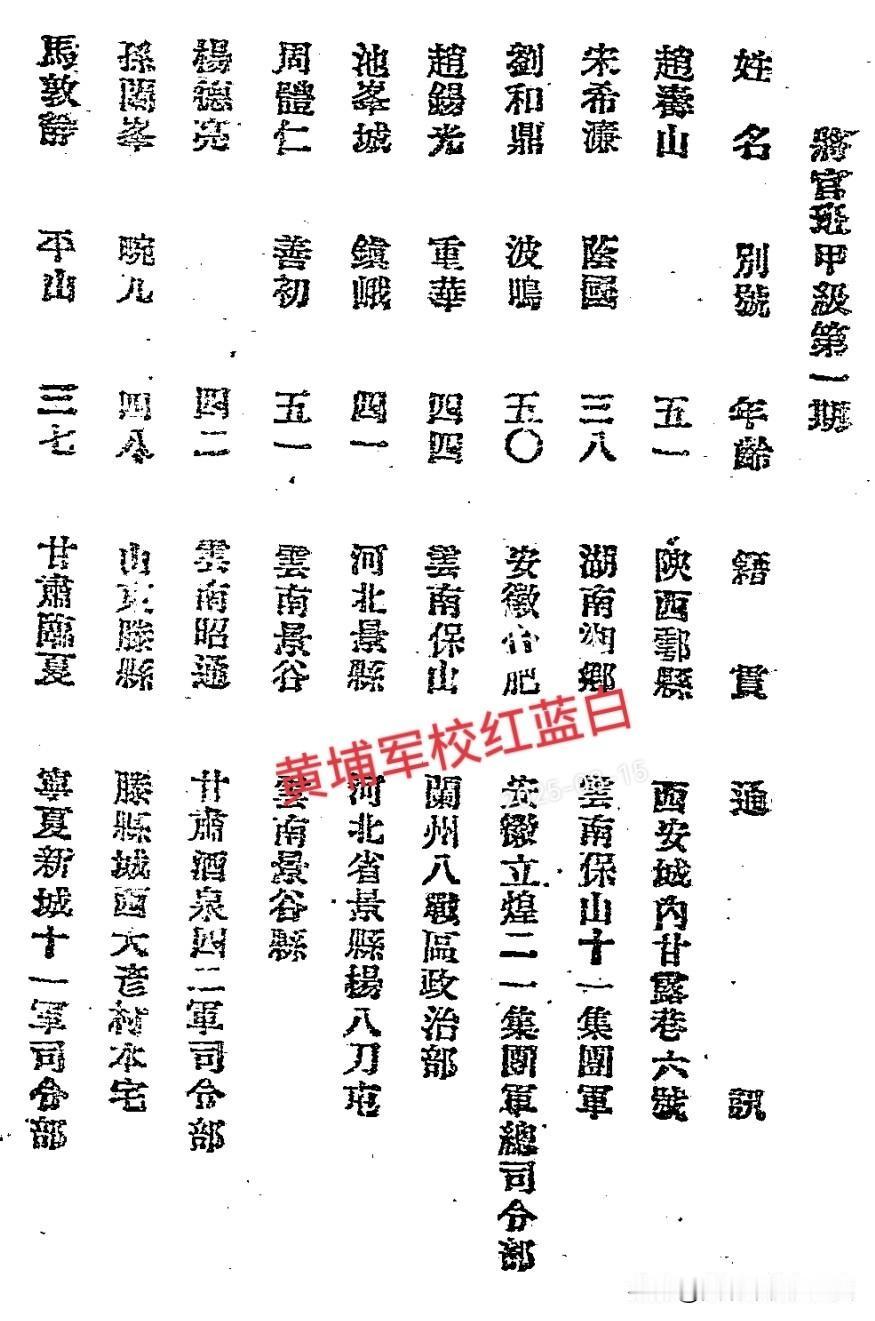 1944年-1945年,民国陆军大学将官班甲级第一期学员名单,共计33人