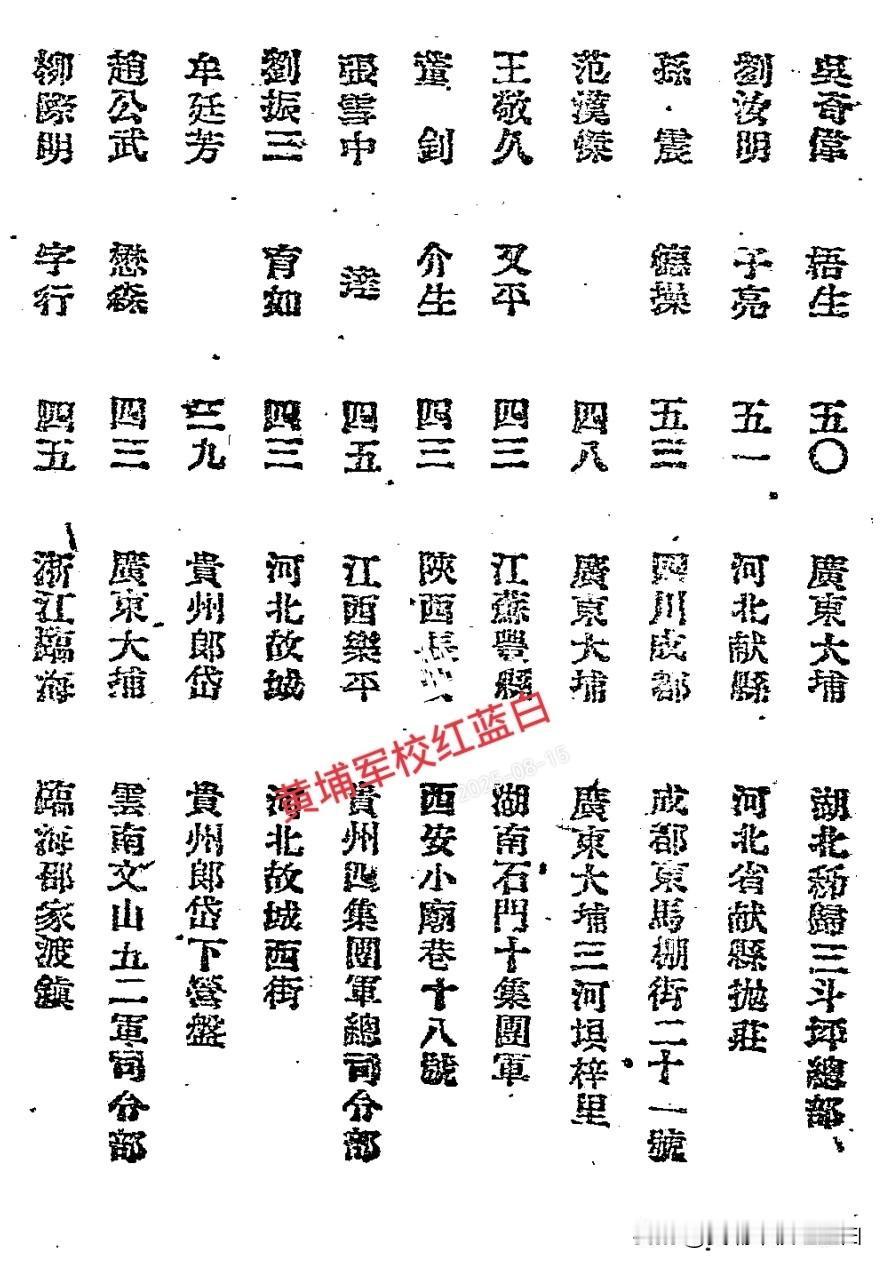 史海揭秘:1944年-1945年,民国陆军大学将官班甲级第二期学员名单,共计59