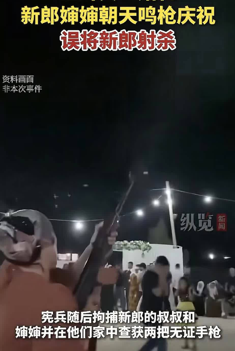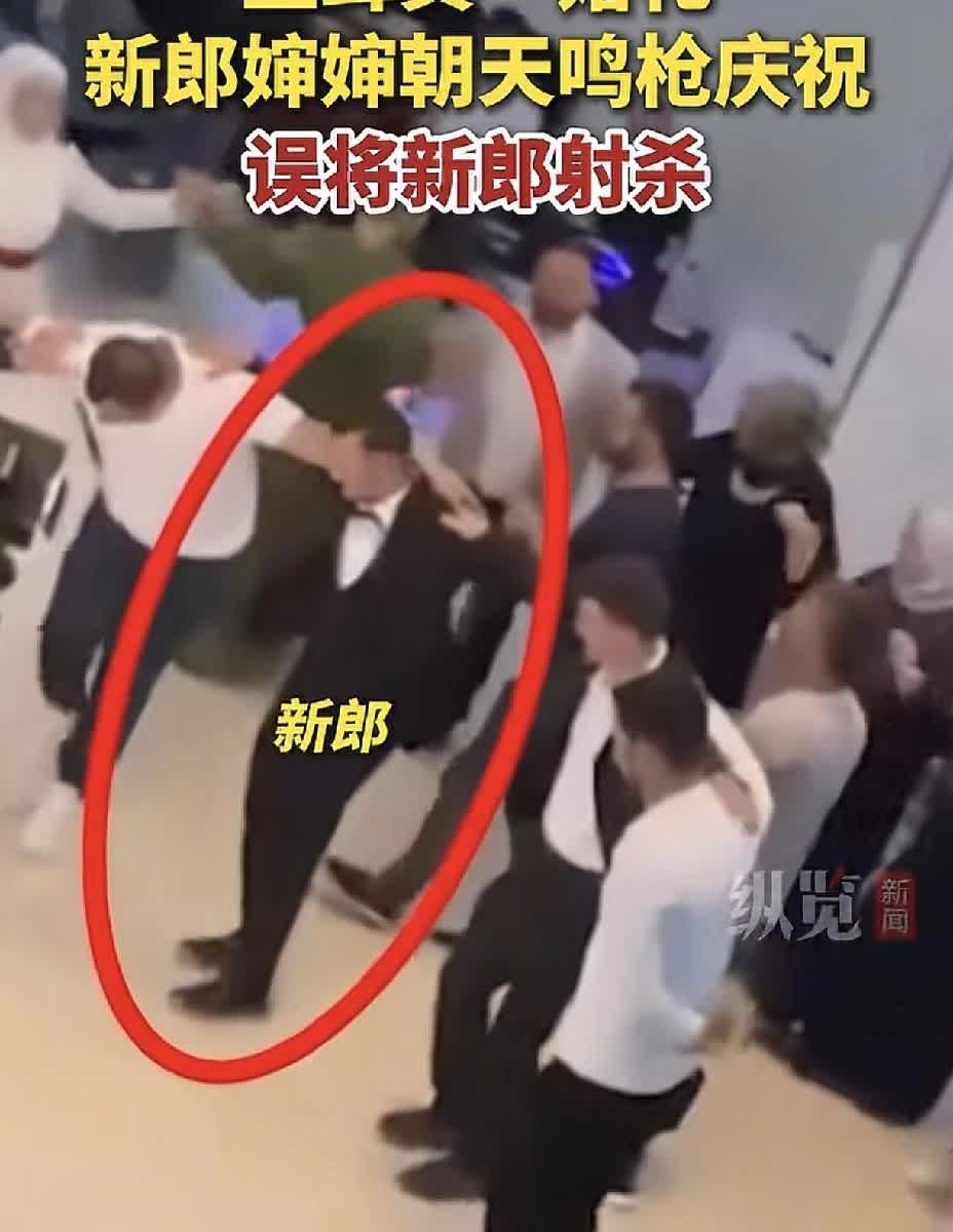 侄子结婚,土耳其这位婶婶是真高兴啊! 中国人结婚高兴了喝酒,这婶婶是高兴了开枪!帅气的23岁新郎在婚礼结束被送回家后,婶婶玩嗨了,高兴的朝天鸣枪庆祝,结果没想到击中了新郎的胸口,新郎因伤势严重没有被抢救过来,婶婶和叔叔也因此被拘捕。 很纳闷,现场那么多人,怎么就偏偏射中了新郎? 本来是一场喜事,结果办成了悲剧。这种习俗真应该改改…