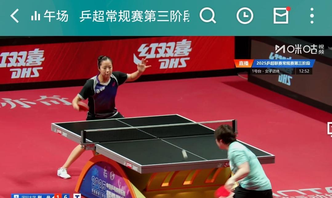 没想到吧!孙颖莎带领的深圳大学队也会有拖堂下课的一天。 乒超联赛今天上午场没有山东魏桥队的比赛,我就选择全程看深圳大学对阵黄石基地华新女队的比赛。 第一盘双打孙颖莎、蒯曼对阵韩菲儿、申裕斌,双方都是一左一右的组合,第一局深圳大学5:1的开局,从5:2到8:6双方比分有规律的在交替上升,局末深圳大学连续拿下三分11:6拿下双打第一局。 第二局深圳大学开局4:1继续领跑,11:9非常顺利的深圳大学拿下第二局。 第三局深圳大学5:2领先,黄石基地华新请求暂停,暂停回来后的黄石基地华新犹如神助,快速追分到5:5,7:5黄石基地华新反超深圳大学队,11:9黄石基地华新扳回一局。 第四局前段5:5,中段10:5,黄石基地华新连续拿下五分后再次被深圳大学追平反超13:11深圳大学大比分3:1拿下第一盘。 第二盘深圳大学队覃予萱对阵黄石基地华新姚睿轩,没想到刚刚在瑞典拿了U19女单冠军的覃予萱竟然被姚睿轩以3:1拿下第二盘。 第三盘深圳大学队蒯曼对阵黄石基地华新韩国外援申裕斌,蒯曼这个小胖妹竟然玩起了大胖的游戏,让二追三有惊无险的以3:2为深圳大学队再拿一分。 第四盘深圳大学覃予萱再战黄石基地华新韩菲儿,覃予萱0:3再度丢了一分。 决胜局深圳大学队孙颖莎对阵黄石基地华新小将姚睿轩,到了该园长展示实力的时候啦!第一局开局4:1莎莎领先,11:3拿下。 第二局6:1的开局莎莎根本不给小将任何机会11:4莎莎拿下第二局。 第三局6:1的开局,9:2眼看就要结束比赛的时候,莎莎遭到了小将姚睿轩的猛烈追分,从9:2到9:8,莎莎的发球轮发球得分,比分来到10:8,姚睿轩发球,莎莎接发球得分11:8经过了将近三个钟的较量,深圳大学大比分3:2战胜黄石基地华新,恭喜深圳大学队,第三阶段两连胜! #晒图笔记大赛#