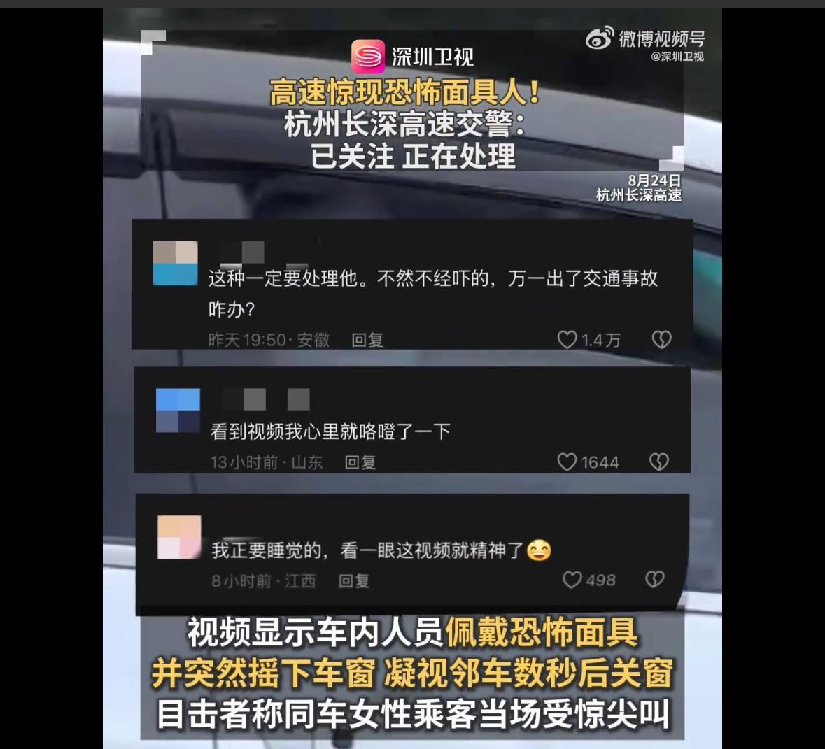 浙江杭州,一网友正行驶在高速上,在和一辆车子并排行驶时,对面的窗户突然打开,一个戴着恐怖面具的脸从窗户里露了出来,将网友吓得一激灵。事发后,网友将自己的经历发了出来,没想到引起了热议,戴面具的人为什么在高速上吓人,成了议论的焦点。 整个事情是这个样子的,8月24日下午4点57分,42岁的Hugo搭朋友的车回杭州,路过富阳龙门互通后,他在车里翻找零食,无意中看见了一个去年在网上买的恐怖面具。 他出于好奇把它拿出来戴了两秒,没笑也没有叫,但是摇下了车窗,并看向旁边的那辆车,就这几秒的视频被旁人拍了下来,迅速在网上火了。 视频里清楚地看到,两辆车是并行行驶,时间大概就十9秒左右。Hugo 把面具戴上又摘下来,之后一路开到杭州南收费站后,他就没再戴了。 整件事没有包括喊话、很明确的挑衅行为,连音乐都没放,只是面具冒出来那一刻,使得旁边车里的人感到受惊。 网友讨论的声音很大,有人觉得这简直太吓人了,也有人意识到这种滑稽背后可能藏着危险。 视频被传出来后,杭州高速交警高度重视,很快就查清这位主角的身份,确认是萧山区某校的外籍老师 Hugo,并第一时间发了通报。 通报指出,虽然事情本身没导致事故,但这种举动至少有潜在风险,容易影响驾驶人注意力。 于是民警对Hugo做了批评教育,他也认识到自己的行为不妥,向对方道歉,也向网友表达歉意。 这段看似恶作剧的场景,从法律角度也并不是无所谓。 根据《道路交通安全法》第六十六条,乘客行为不能妨碍驾驶人安全驾驶。 简单来说,不管你是在后排玩自拍、还是在副驾拿个东西瞎晃,都不能影响司机的注意力。 高速车上突然出现恐怖面具,驾驶员被吓到的话,刹车或者猛打方向盘就可能会造成事故。如果因为这几秒钟出了事,严重的话甚至会构成交通肇事罪。 根据《刑法》第133条规定,交通肇事罪是指违反交通法规,因而造成重大伤亡或财产损失,还逃逸或有恶劣情节的,处三年以下有期徒刑或者拘役,严重者三年以上七年以下,造成死亡后逃逸的还可能七年以上。 进一步看,如果行为人明知可能危害公共安全还故意为之,比如这一次Hugo戴面具事件,若造成交通事故,就可能按《刑法》第114条“以危险方法危害公共安全罪”论处。 这条强调的是故意用危险方法行为,比如开非法漂移、甩尾、当众点燃烟花爆竹、甚至故意晃灯致人眩目等,都属于这类。这种故意造成安全风险的行为,即便没造成实害,也可能被追究刑责。 这件事也让人反思,高速上一个玩笑举动可能瞬间转变成安全隐患。自己认为没事,别人可能马上心慌刹车,转向失控,撞墙、撞车都可能发生。 事实上,这种时候法律并不是吹毛求疵,而是设立红线:高速上是有限空间,有些行为没伤人,但一旦分神就能出大事。 另外,如果因吓人行为引发事故,造成他人受伤或财产损失,受害者可以根据《民法典》第1165条“过错责任”原则要求赔偿,包括医疗费、误工费、精神损害赔偿等。 即便不是司机,作为行为者的乘客只要被认定为存在过错,就可能承担赔偿责任。 最后,这事给广大司机们都留下个教训,高速不是秀场,别为博眼球而做出危害自己或别人人身安全的事情! 你觉得好玩,别人可能丢了命。法律不是拦你娱乐,是拦你出事。想拍趣味视频,也得选安全场地,不是在高速上。 做人要依法做人,开车要文明确目,安全为先,这才是真正的文明出行。 信息来源:环球网
