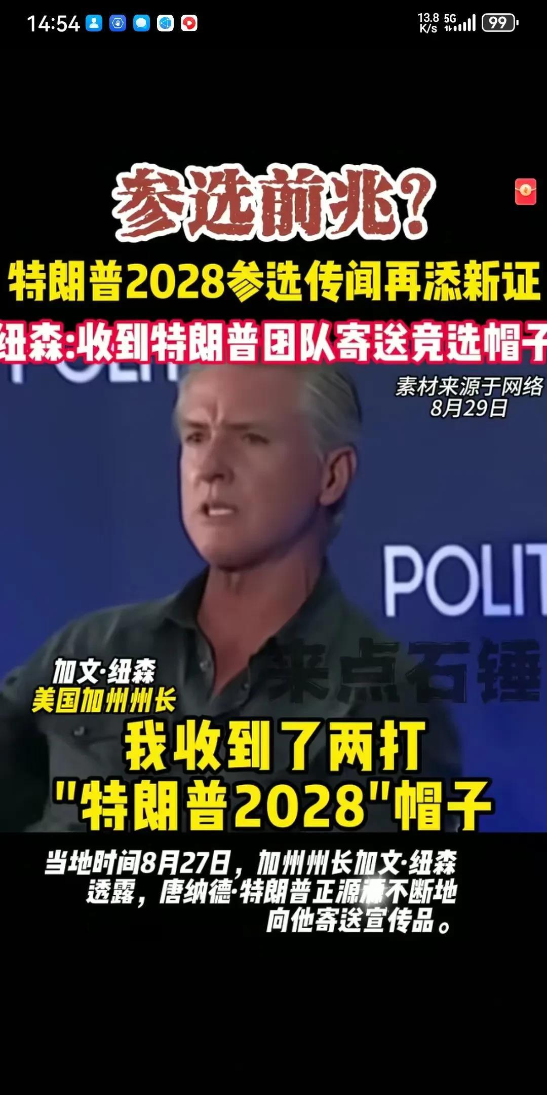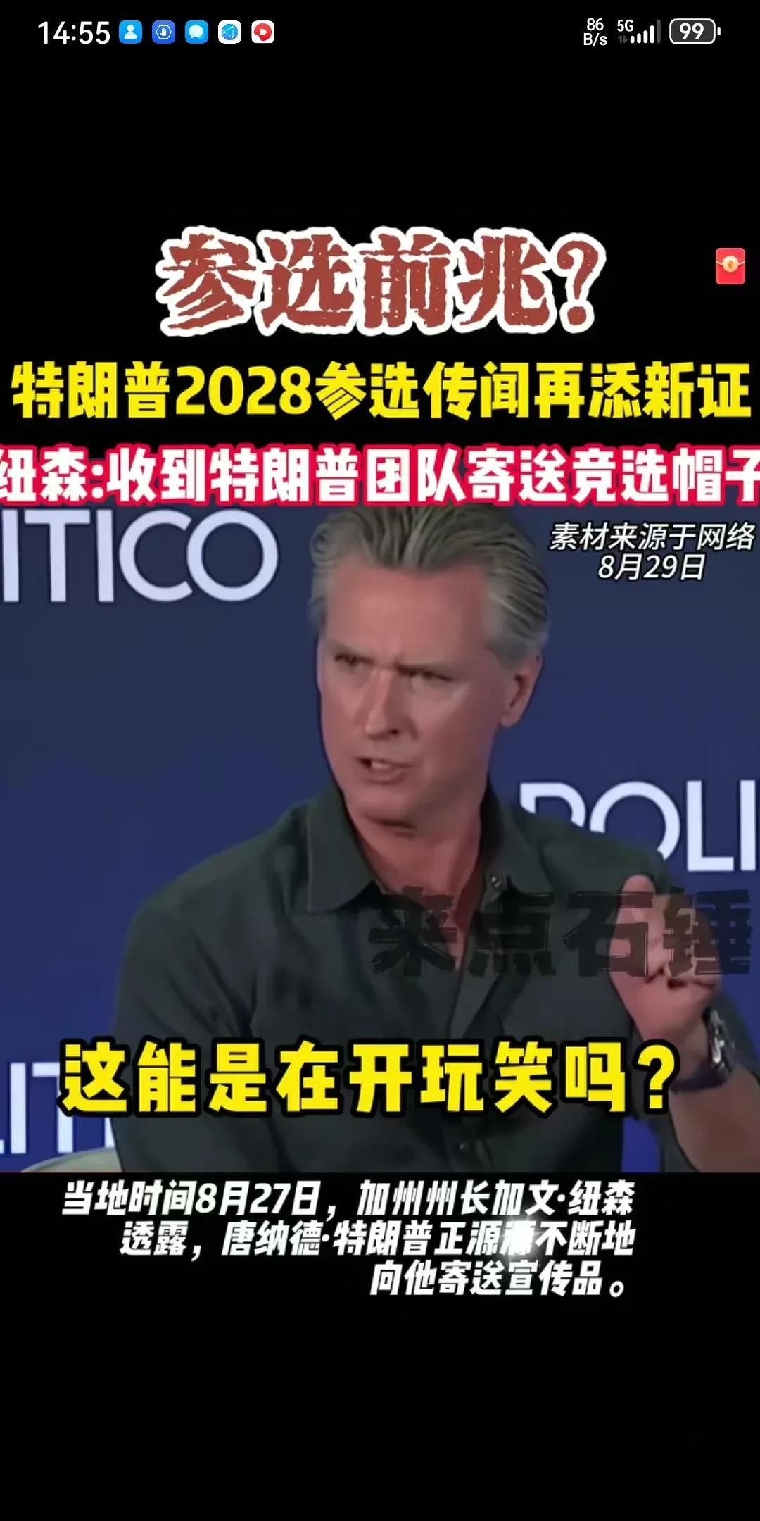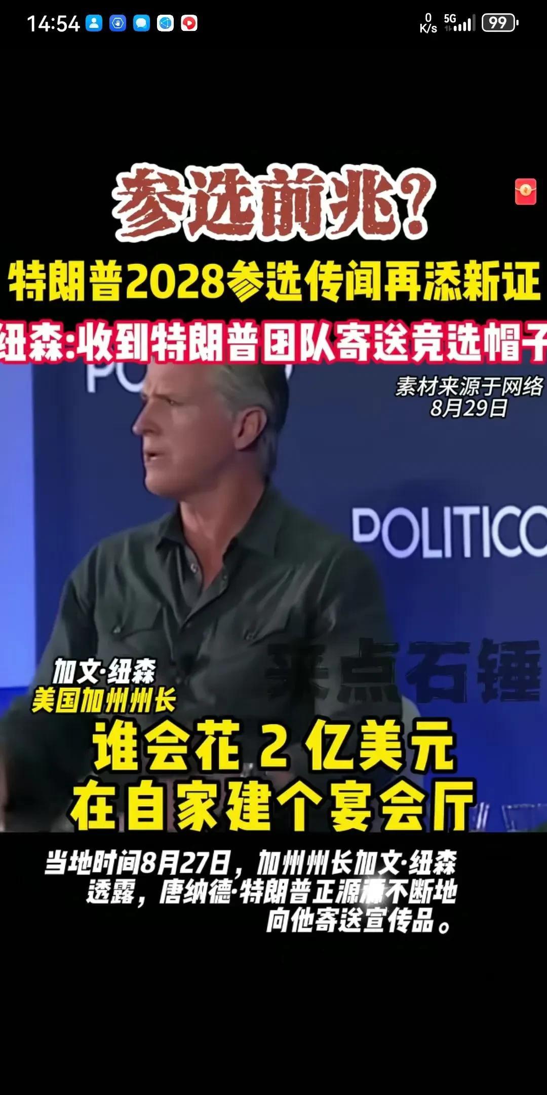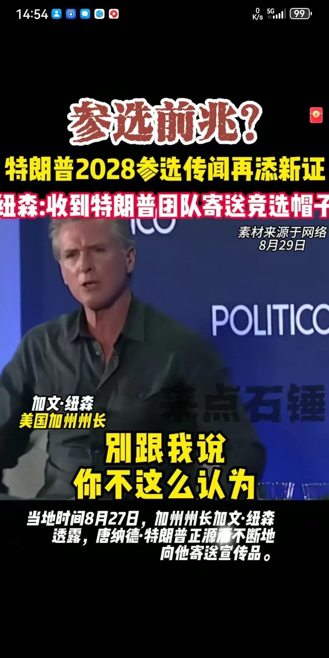 纽森呼吁美国人再不醒悟,就会失去自己的国家了,称川普已经准备参选2028大选了,因为川普团队在准备2028年大选的物料了,他自己还收到川普团队寄给他的两打“川普2028”的帽子! 万斯如果听到这个消息,肯定犹如晴天霹雳,万斯前两天刚刚说自己已经请接受了总统任职培训,如果川普有什么意外,自己立马就可以接手总统职务,因为最近川普被怀疑身体健康有问题,所以记者就问万斯这个问题,没想到万斯的回答让人为它捏一把汗,这也太想进步了吧,想提前转正,但是现在纽森却说川普要选2028,万斯想死的心都有了