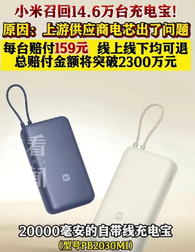 小米召回14万台安全隐患充电宝,已经被各大媒体报道了,小米回应:是供应商电芯问题,跟小米无关。