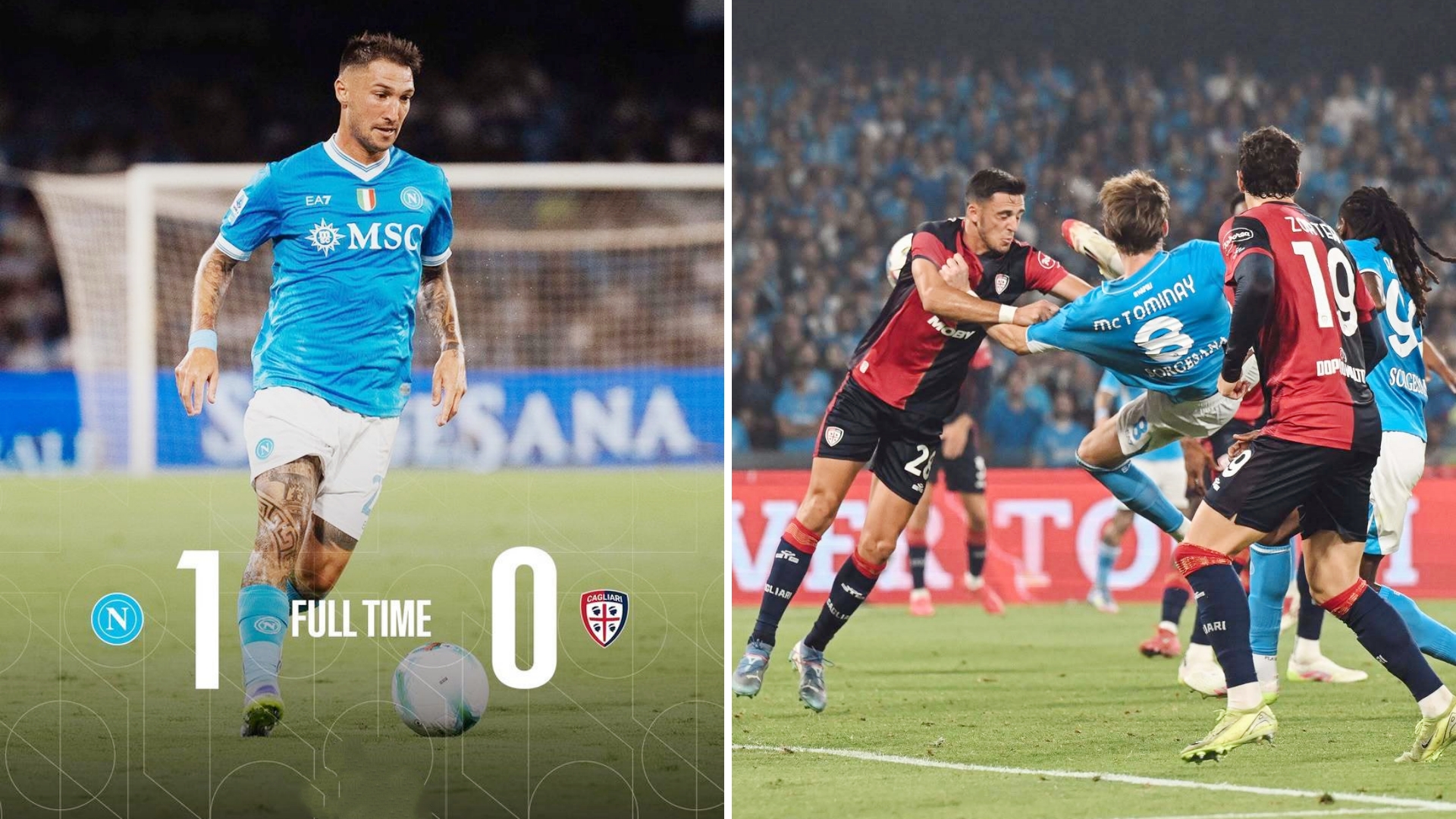 意甲:那不勒斯主场1-0绝杀卡利亚里,新赛季意甲开局2连胜。 双方始终难以取得进球,终场前安古伊萨95分钟献绝杀。