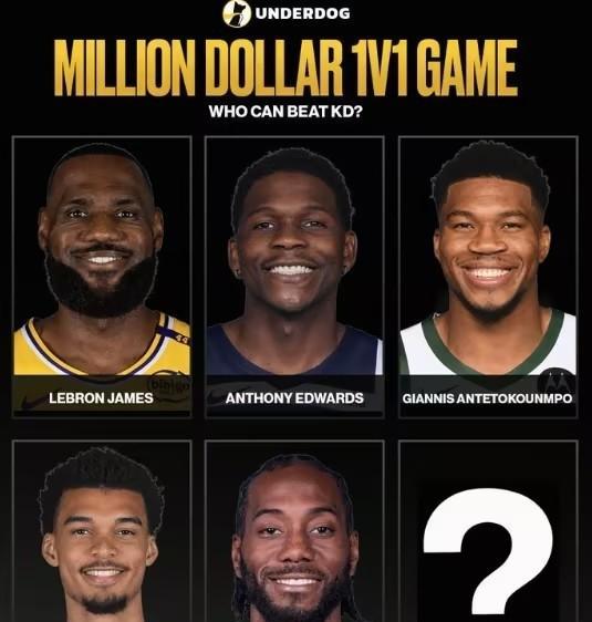 而在此之前,杜兰特曾在公开场合表示,愿意在2026年全明星赛上设立100万美元的单挑赛。Underdog媒体也列出了可能赢他的五人名单,其中包括詹姆斯、爱德华兹、字母哥、文班亚马和莱昂纳德,外加一个“其他选项”。 而哈特心中的这个“其他”,正是迈克尔·比斯利!这一言论无疑让球迷们对比斯利的单挑能力充满了期待。 那么,你觉得谁真能单挑赢KD呢?是比斯利凭借出色的运动能力和得分技巧,还是老詹凭借丰富的经验和全面的技术?或者是文班亚马等新星的崛起,给杜兰特带来挑战?