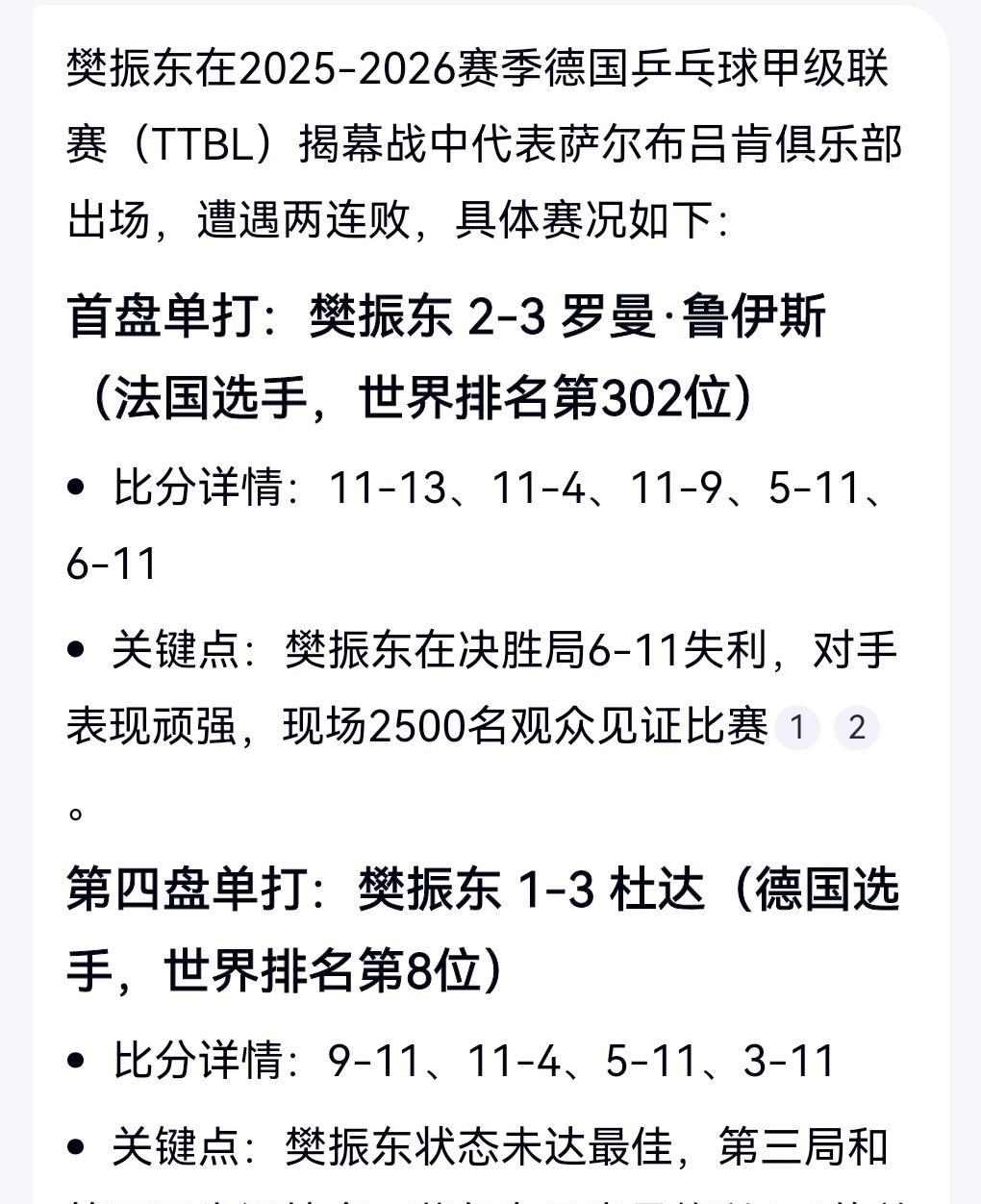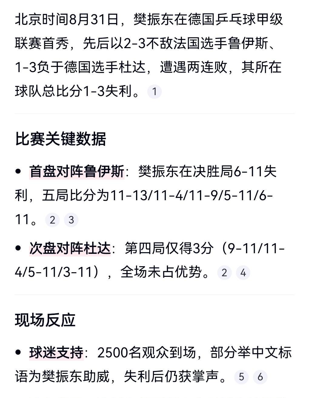 这样太让人意外了吧。 8月31日,樊振东德甲首秀2连败。 难道是因为水土不服吗?