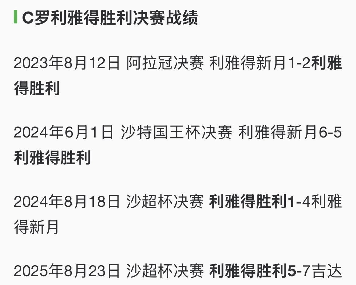 啊?三进决赛,却一个冠军都没有啊?我以为C罗在利雅得已经拿了三四个冠军了。为啥会给我带来这种错觉?