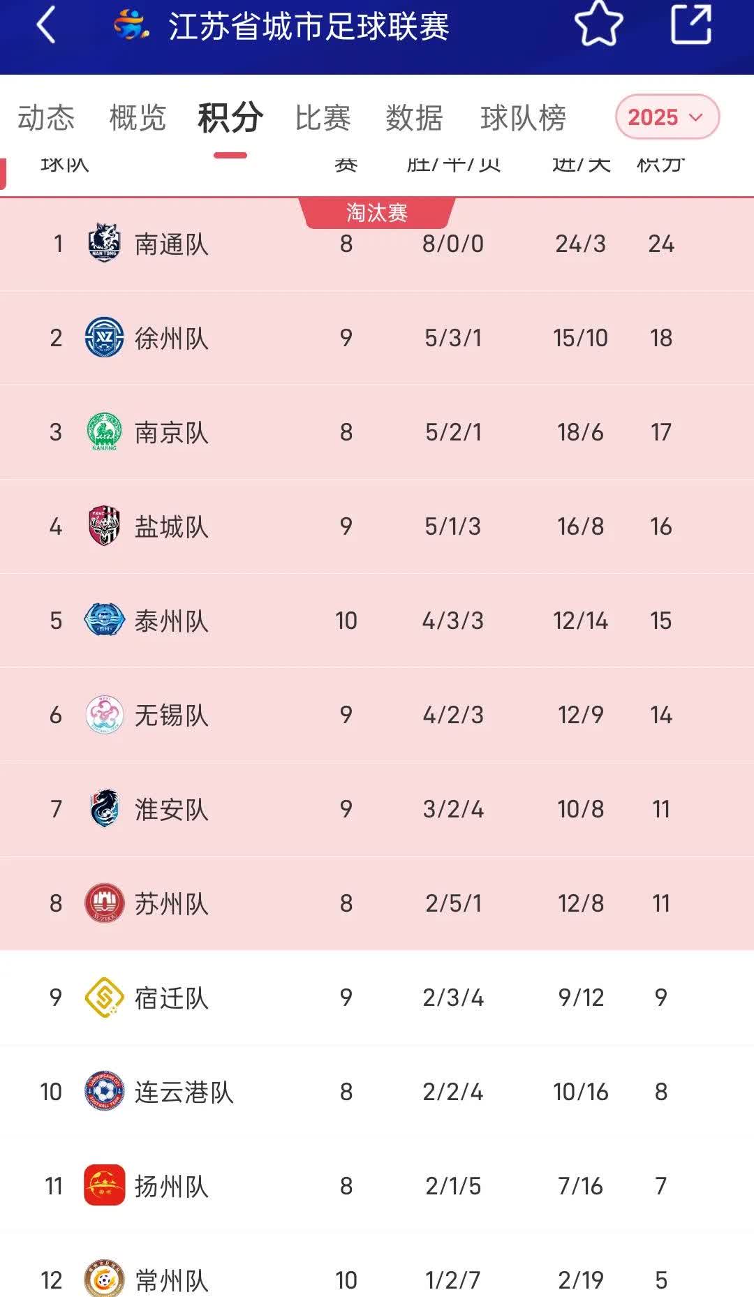 苏州的晋级之路充满荆棘!今晚是1:2输给南通以后,苏州积11分,以净胜球的优势暂列第八名,进入淘汰赛的资格岌岌可危。淮安基本无缘淘汰赛了,那就是苏州,淮安,连云港三支队伍争夺两个晋级名额。苏州剩下的对手盐城,徐州,常州,至少要一胜一平拿下十五分,不然也可能被淘汰……