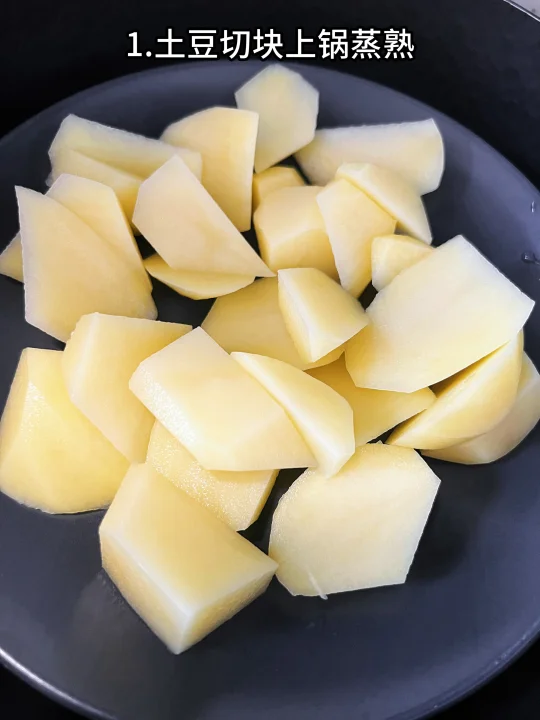 1、土豆切块上锅蒸熟