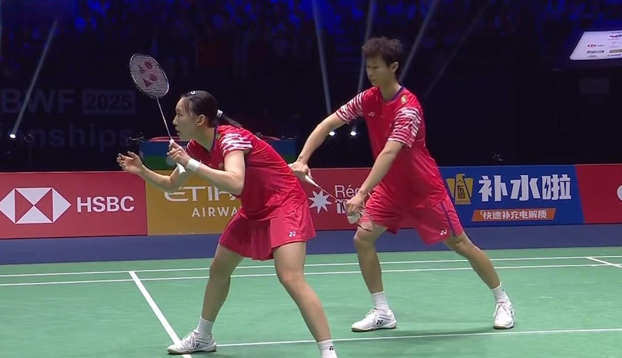 2025年世界羽毛球锦标赛混双决赛中,蒋振邦/魏雅欣15-21,14-21不敌陈
