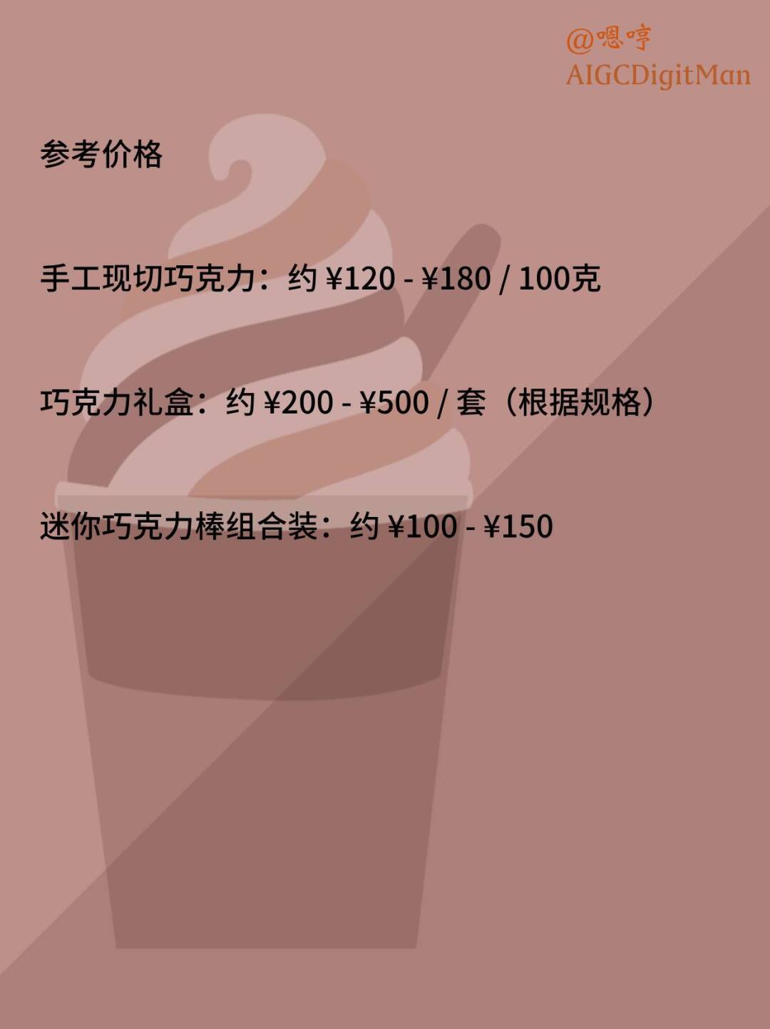 手工现切巧克力:约 ¥120 - ¥180 / 100克