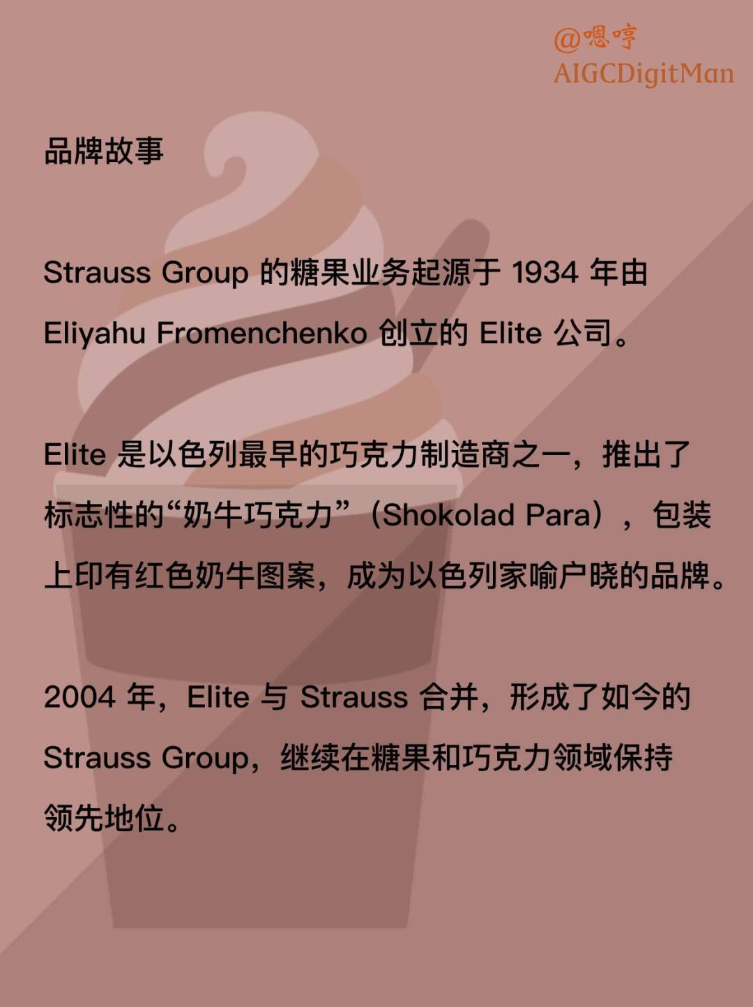 Strauss Group 的糖果业务起源于 1934 年由 Eliyahu Fromenchenko 创立的 Elite 公司。