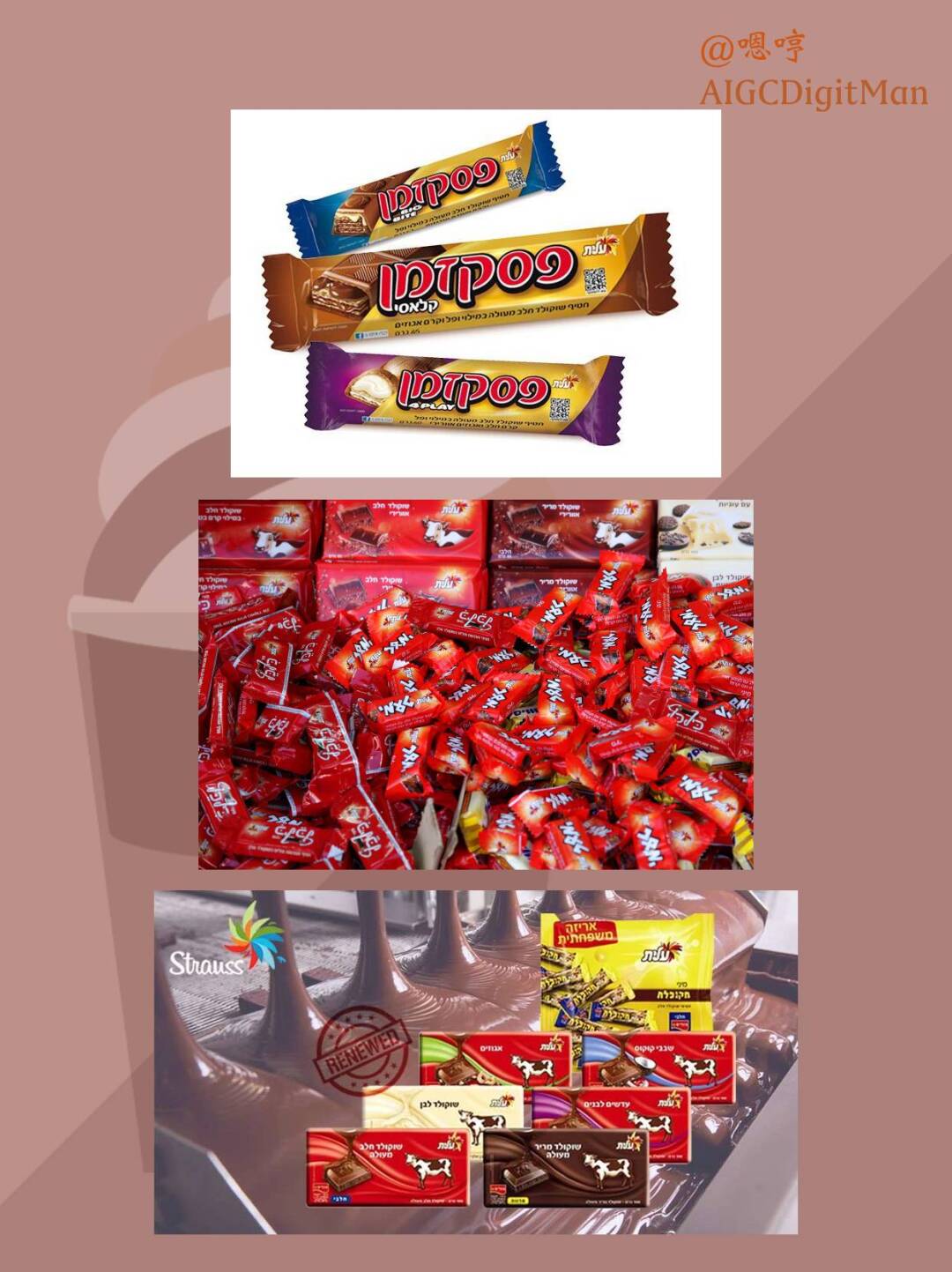 奶牛巧克力(Shokolad Para):经典的牛奶巧克力,以其浓郁的口感和红色奶牛包装而闻名,是以色列销量最高的巧克力品牌之一。
