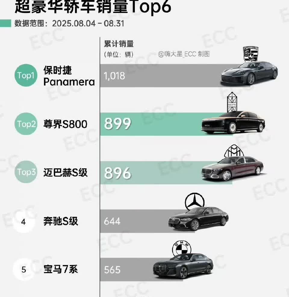 孙少军: 我错了,8月尊界就已超过奔驰宝马奥迪了! 之前孙少军预测,可能在九月份尊界S800,会全面的超越迈巴赫,奔驰S级,奥迪A8 L,宝马七系。 但是现在看来在上个月的最后一周,他们就已经做到了,目前统计出来上个月的尊界卖出去了899台! 这也就意味着他在上个月做到了全面超越进口的四大豪华越野车品牌,现在摆摊前的,就只有一个保时捷帕拉梅拉! 看看下个月,他这个数字能不能够刷新起来,突破1000辆,顺便超越保时捷!