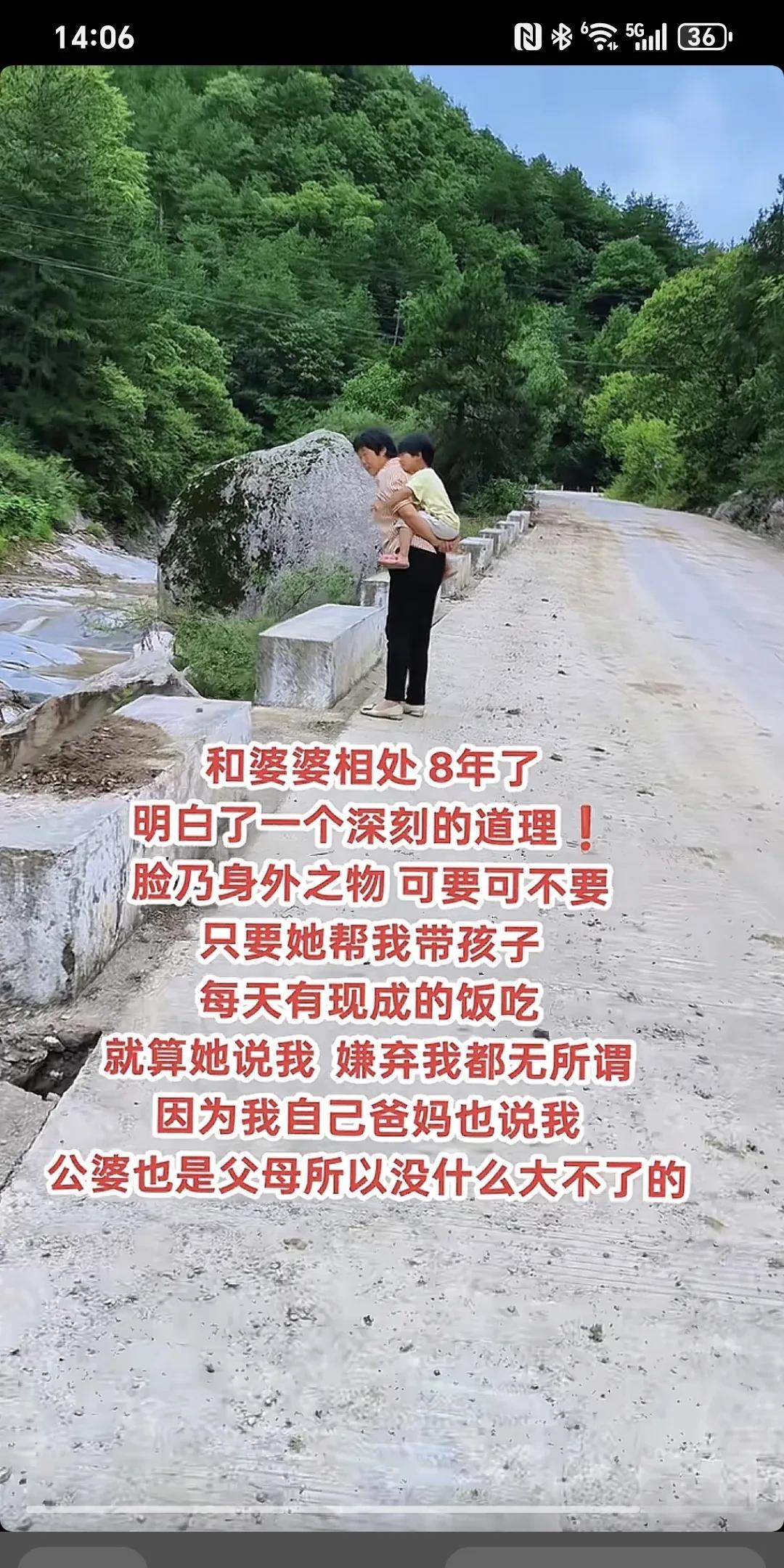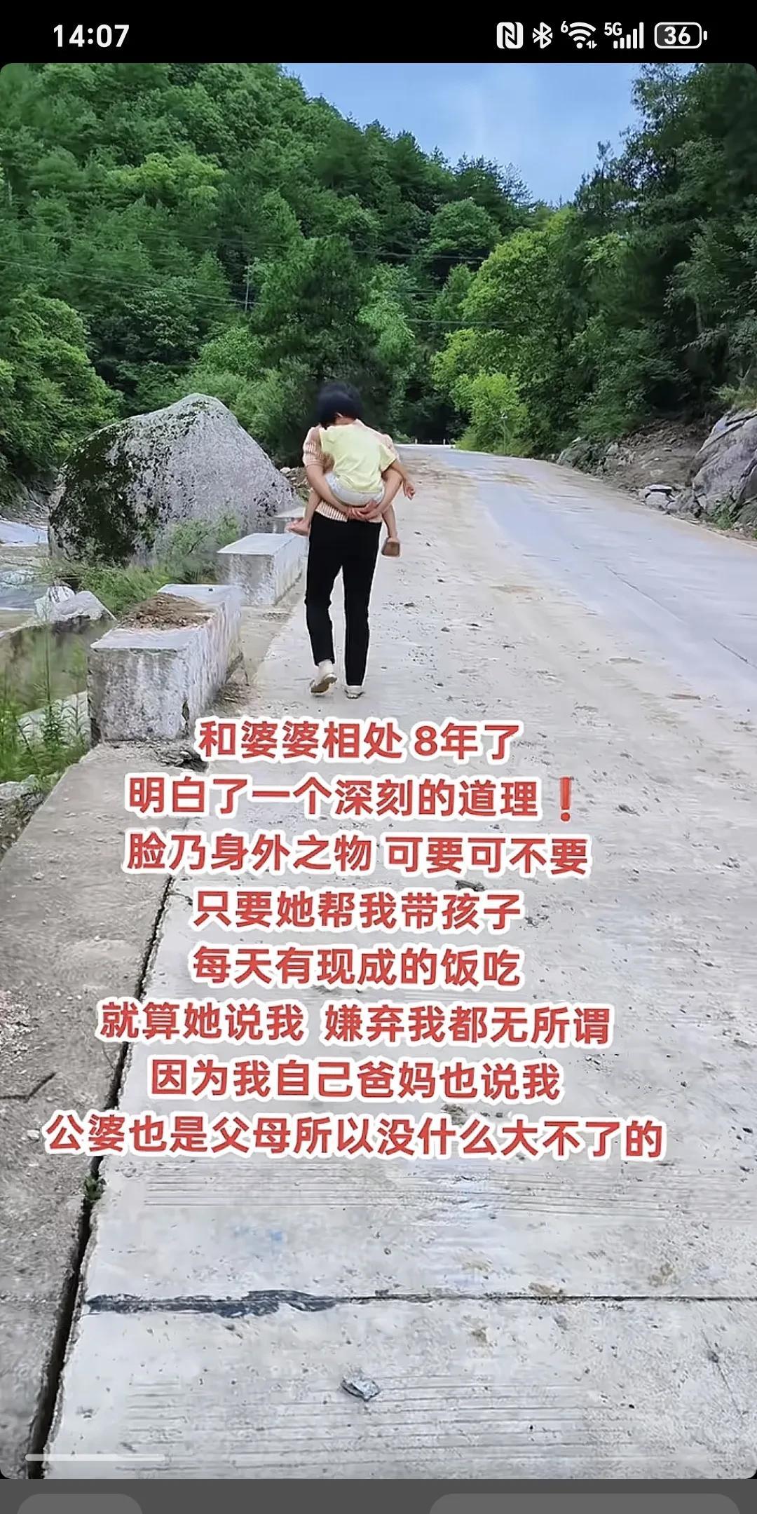 老婆婆相处八年了,明白了一个深刻的道理。脸乃身外之物,可要可不要,只她帮我带孩子,每天有现成的饭吃,他说我嫌弃我也无所谓,因为我自己爸妈也说我,公婆也是父母所以没什么大不了的。 聪明的儿媳妇,我儿媳妇就是这样进门也妈妈出门也妈妈的叫,所以才把我累得不要不要的还是开学。 职明的儿媳妇也是这样,婆婆骂就骂,无所谓,反正婆婆煮好饭,该吃就吃,骂有不痛,自己妈从小到大一直在骂,也没有少一块肉。 不错,活的通透,其实大多数的婆婆还是死心塌地的帮儿子的,媳妇只要聪明跟着享福就行了[呲牙][呲牙][呲牙]#婆媳之间要怎么相处#