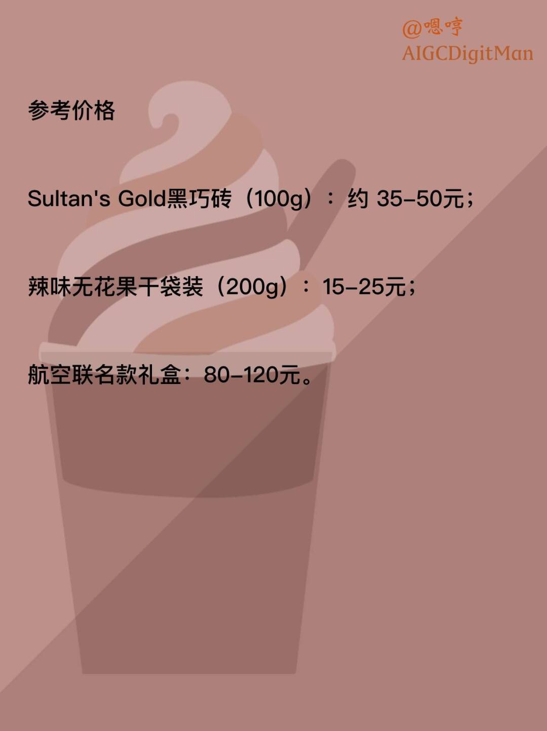 Sultan's Gold黑巧砖(100g):约 35-50元;