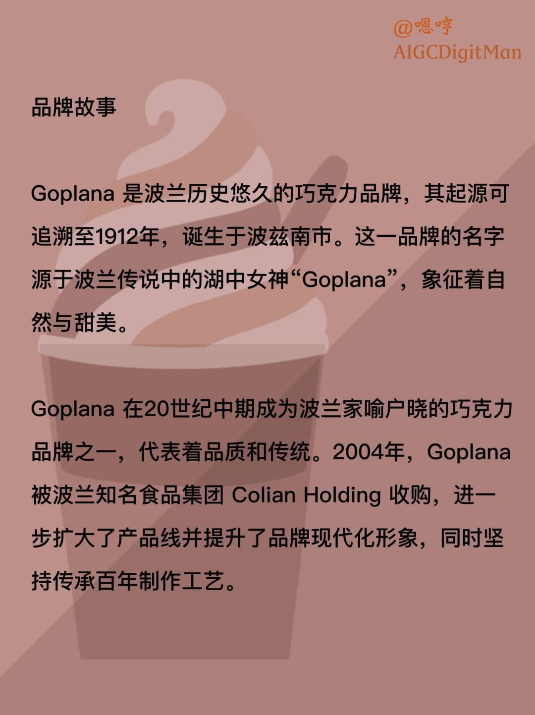 2004年,Goplana 被波兰知名食品集团 Colian Holding 收购,进一步扩大了产品线并提升了品牌现代化形象,同时坚持传承百年制作工艺。