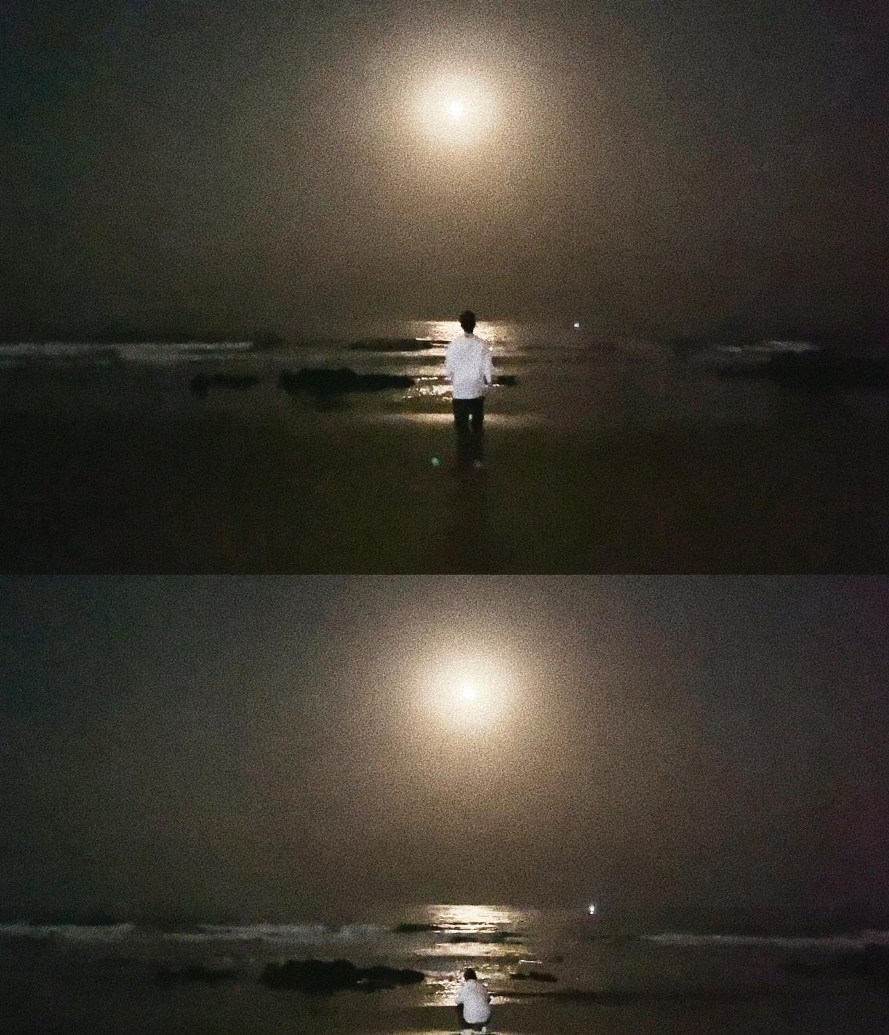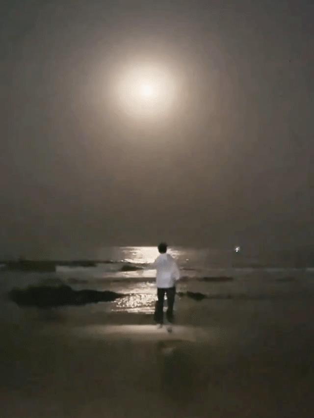“城里的月光把梦照亮,请温暖他心房” 黑黑的天空挂着莹莹之月,小小的月亮奔向深深的大海。