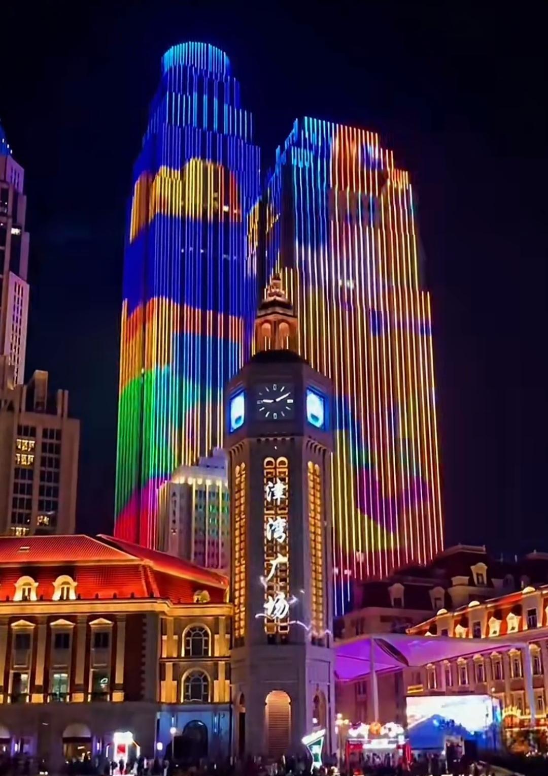 一些天津网友表示,在天津生活30年了,从未看过天津如此漂亮。 这还是借了上合峰会光! 天塔不但全身会亮,而且还会与无人机配合,搞出一些节目。 津湾广场,灯火辉煌,让人感觉不比上海外滩差。 最让人意想不到的是,过年都不响的世纪钟,居然也会转动,也会报时。 天津很多建筑全都披上了灯光,几乎把能点亮的灯全都点亮了。 让天津的老铁们也感受到了不一样的家乡夜景。 #天津上合灯光秀# #天津城市景观# #天津身边事#