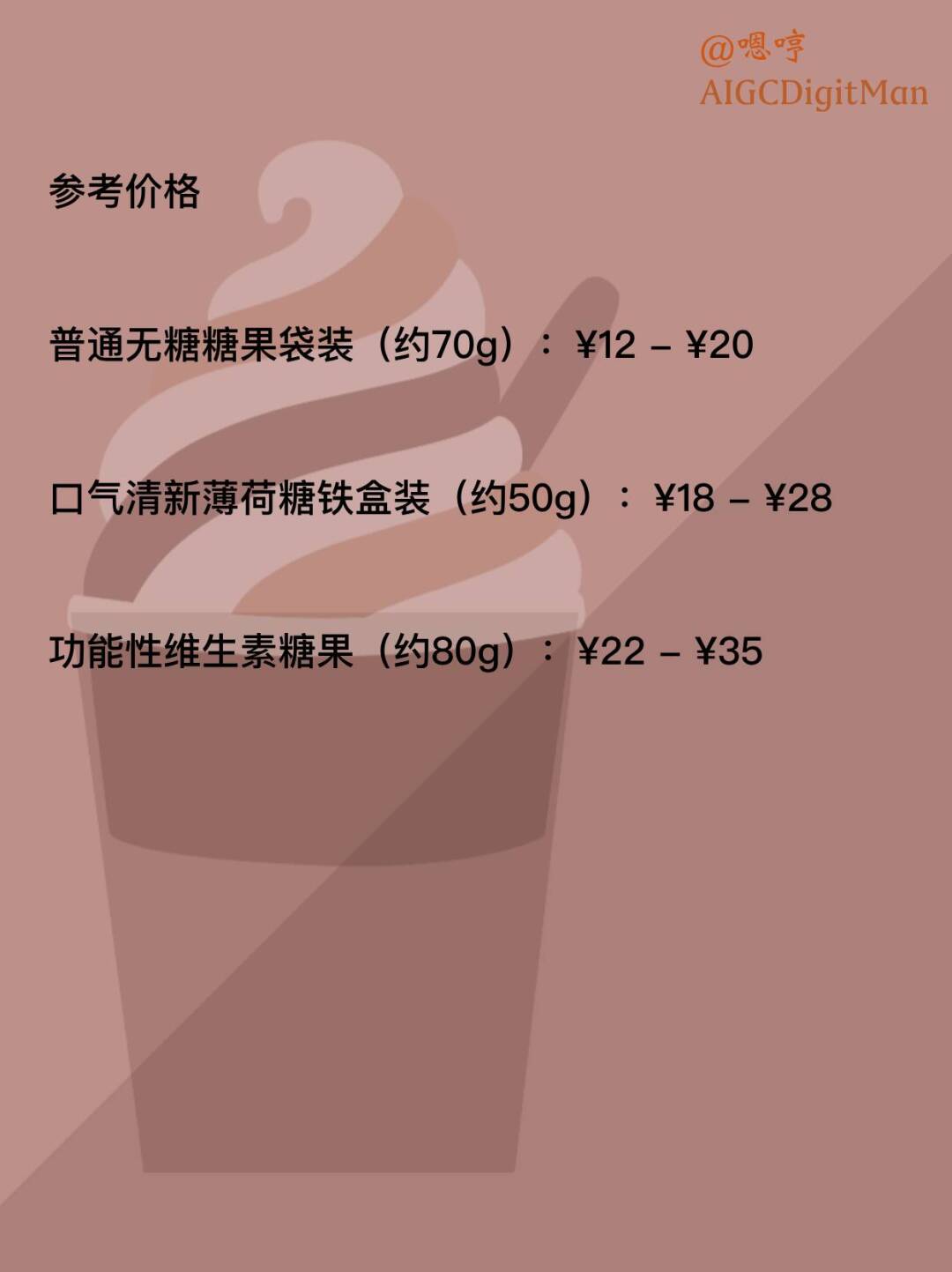 普通无糖糖果袋装(约70g):¥12 - ¥20