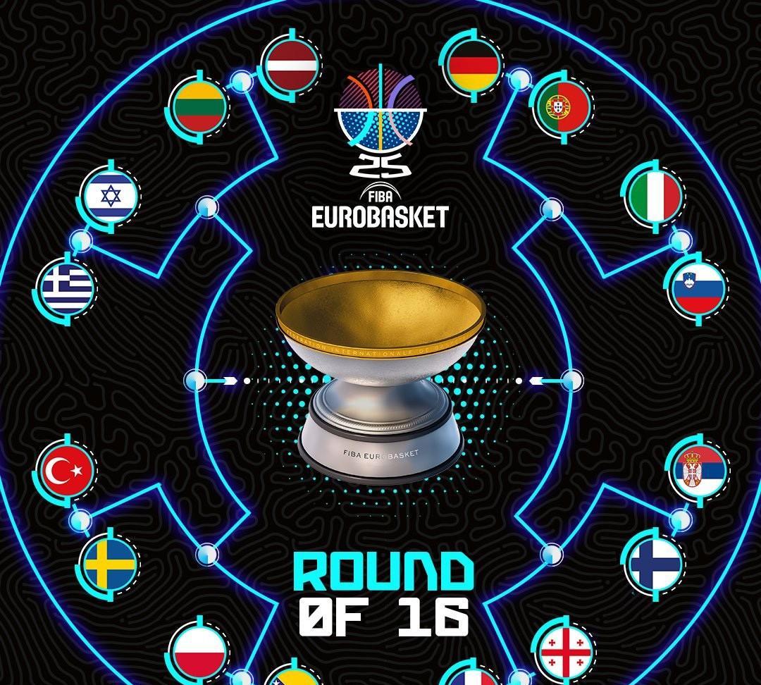 #男篮欧洲锦标赛# 『就在今天!随着小组赛完美收官,男篮欧锦赛 16 强大名单及最终对阵正式出炉』 北京时间 9 月 5 日,随着比利时最后时刻准绝杀波兰,本届欧锦赛小组赛正式落下帷幕,经过 9 天 60 场比赛的捉对厮杀,4 个小组 24 支队伍中 16 支球队脱颖而出进入最终 16 强,具体名单为: A 组:土耳其、塞尔维亚、拉脱维亚、葡萄牙 B 组:德国、立陶宛、芬兰、瑞典 C 组:希腊、意大利、波黑、格鲁吉亚 D 组:法国、波兰、斯洛文尼亚、以色列 与此同时,小组赛出线多个不可思议: 16 支球队各自落位,将从 9 月 6 日起展开单败淘汰赛,经过层层拼杀,来决出本届欧锦赛的最终总冠军,具体对阵如下: A 组第一对阵 B 组第四,申京 vs 拉松 D 组第二对阵 C 组第三,波尼特卡 vs 努尔基奇 B 组第二对阵 A 组第三,瓦兰丘纳斯 vs 波尔津吉斯 C 组第一对阵 D 组第四,字母哥 vs 阿夫迪亚 B 组第一对阵 A 组第四,施罗德 vs 科塔 C 组第二对阵 D 组第三,丰泰基奥 vs 东契奇 A 组第二对阵B 组第三,约基奇 vs 马尔卡宁 D 组第一对阵 C 组第四,里萨谢 vs 比塔泽