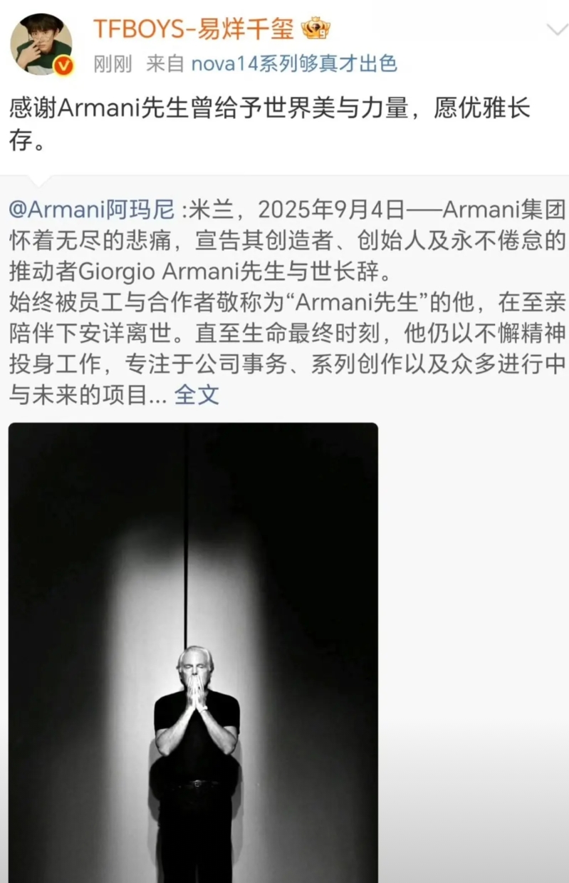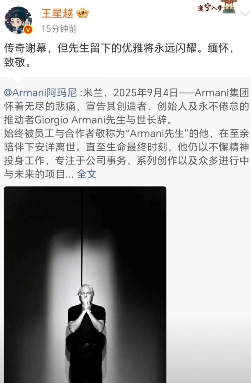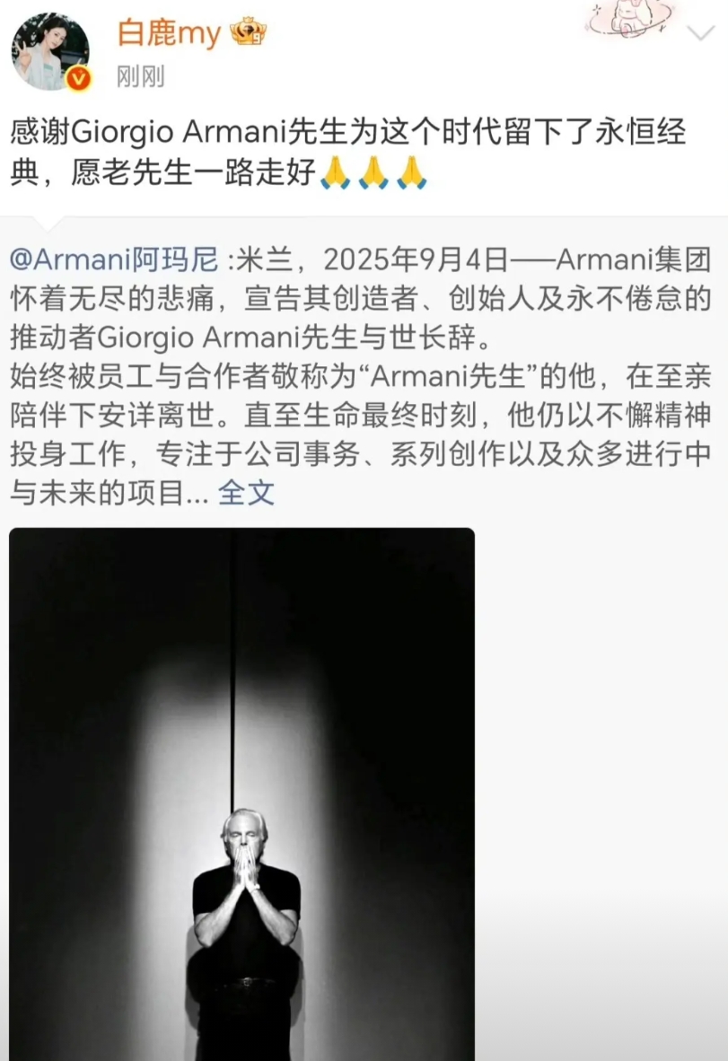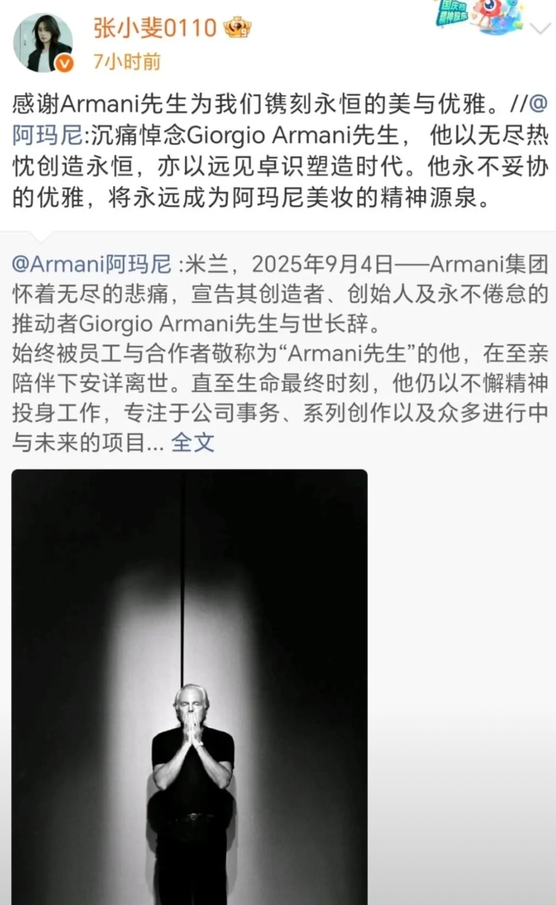 阿玛尼老总死了,众星都在发文悼念,又是转发,又是小作文,写的一个比一个长,一个比一个用心!