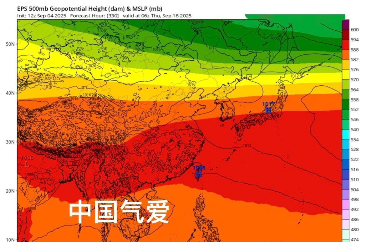【气象观察】EPS模式对9中旬末冷空气有所反映。形势来看,中旬副高来一轮高强度北