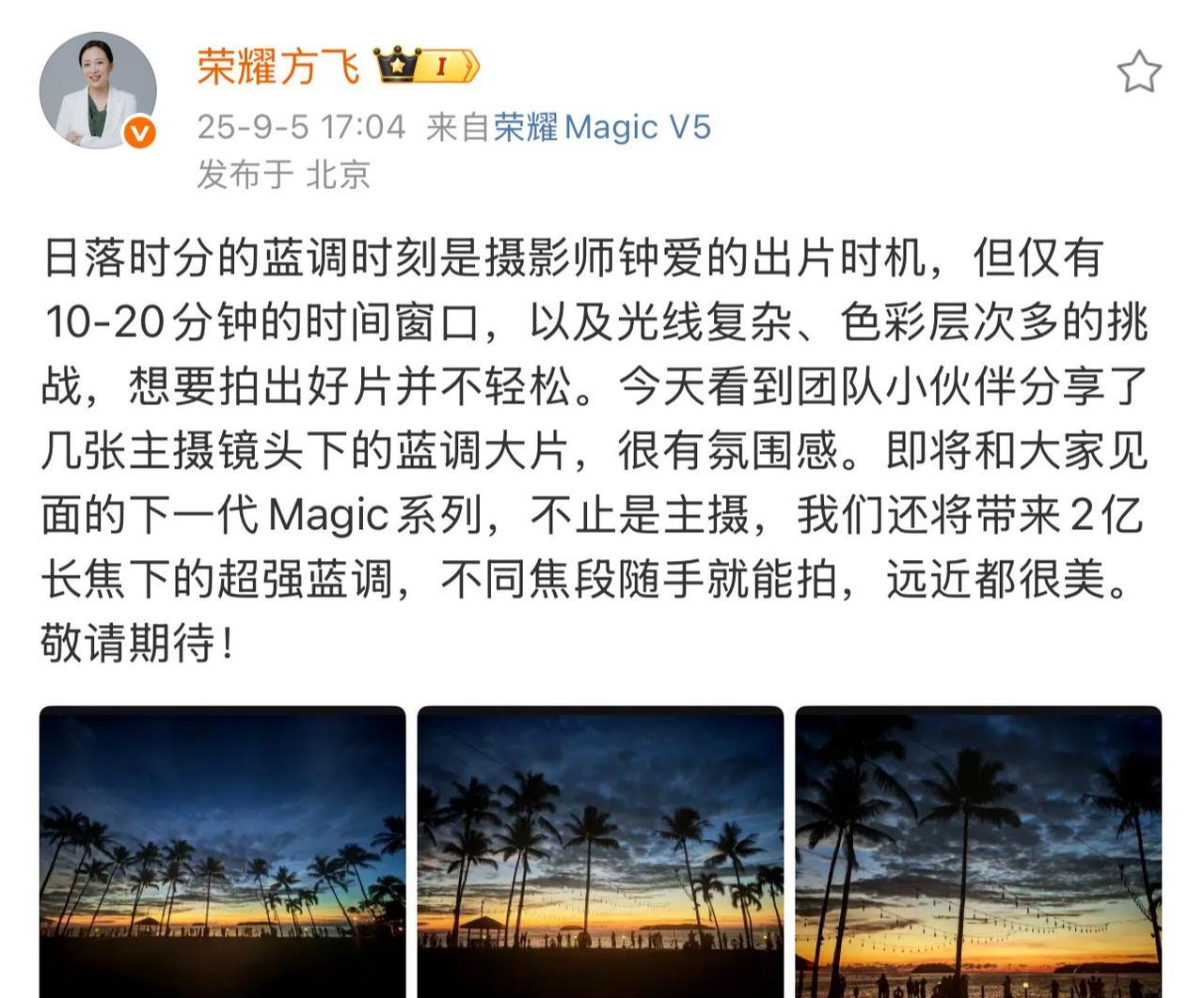 荣耀 Magic8 系列,主摄和 2 亿长焦都将带来超强蓝调模式 观感还是挺漂亮的 [吃瓜群众]