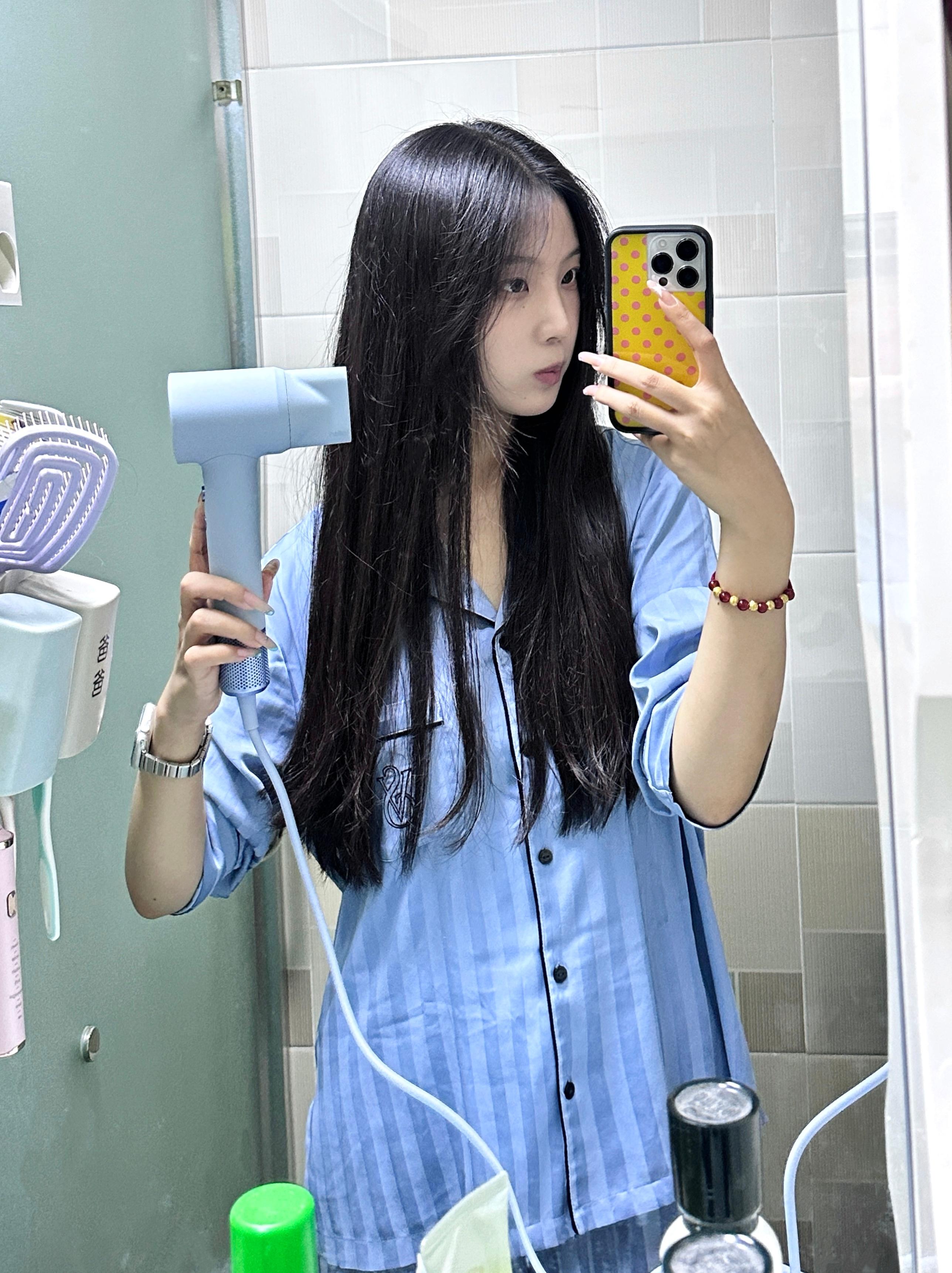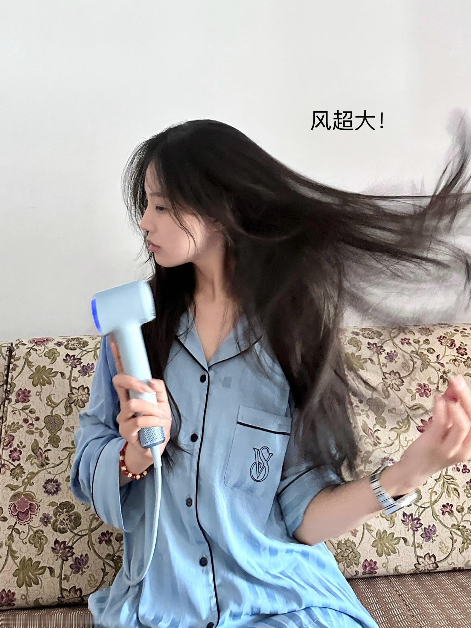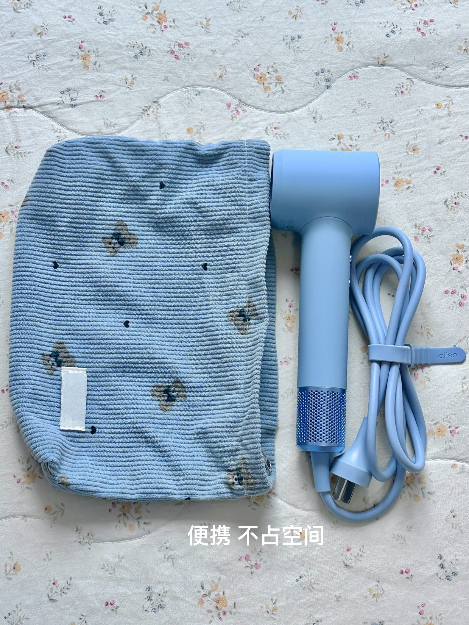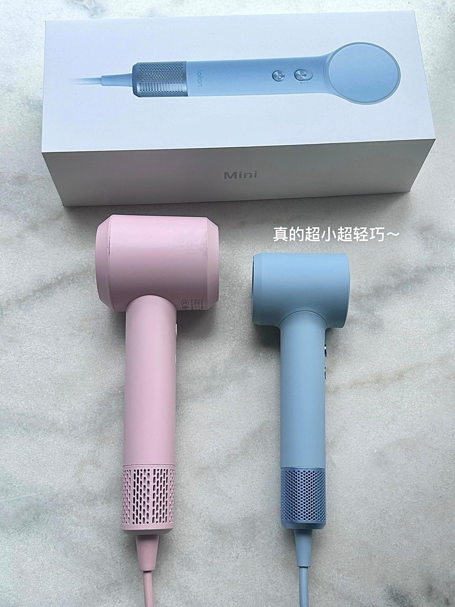 这次果断入了徕芬 Mini!真的超小只,差不多一杯咖啡的重量,随手塞进行李都不占地方。风力还特别大,3–5 分钟就能吹干,头发蓬松顺滑,出片完全没压力~(最主要是真的爱baby蓝^^)