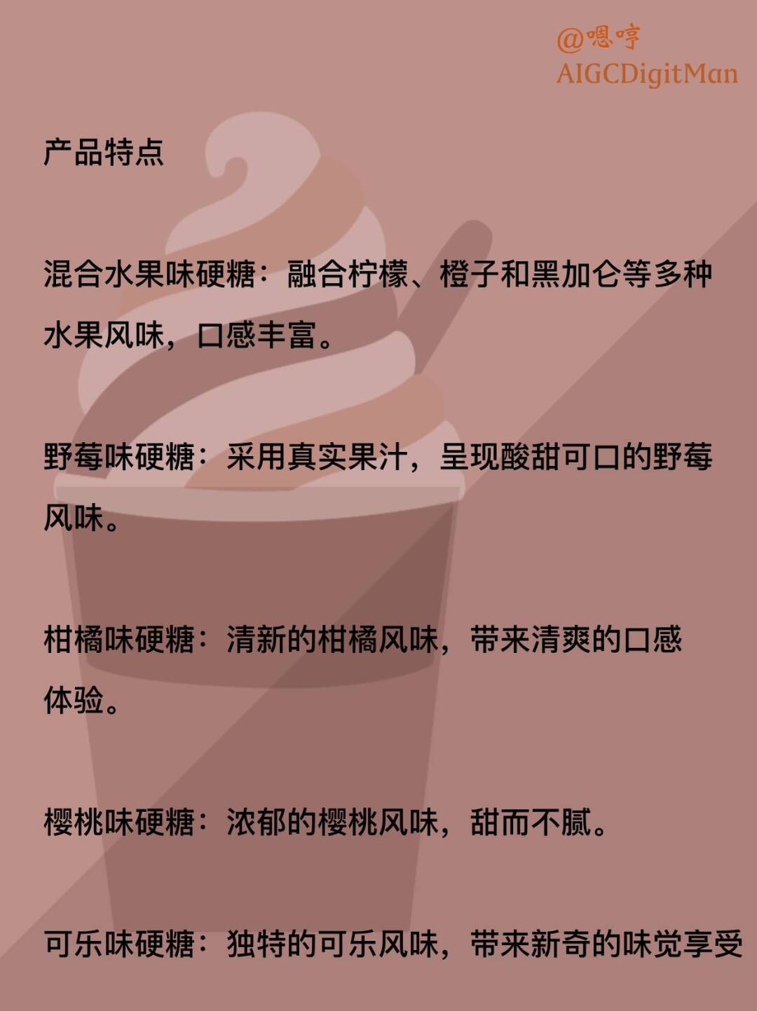 樱桃味硬糖:浓郁的樱桃风味,甜而不腻。