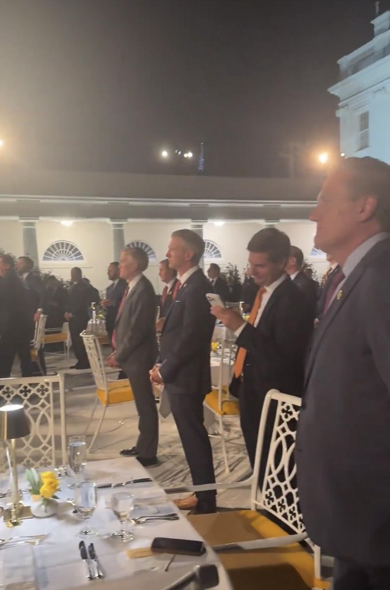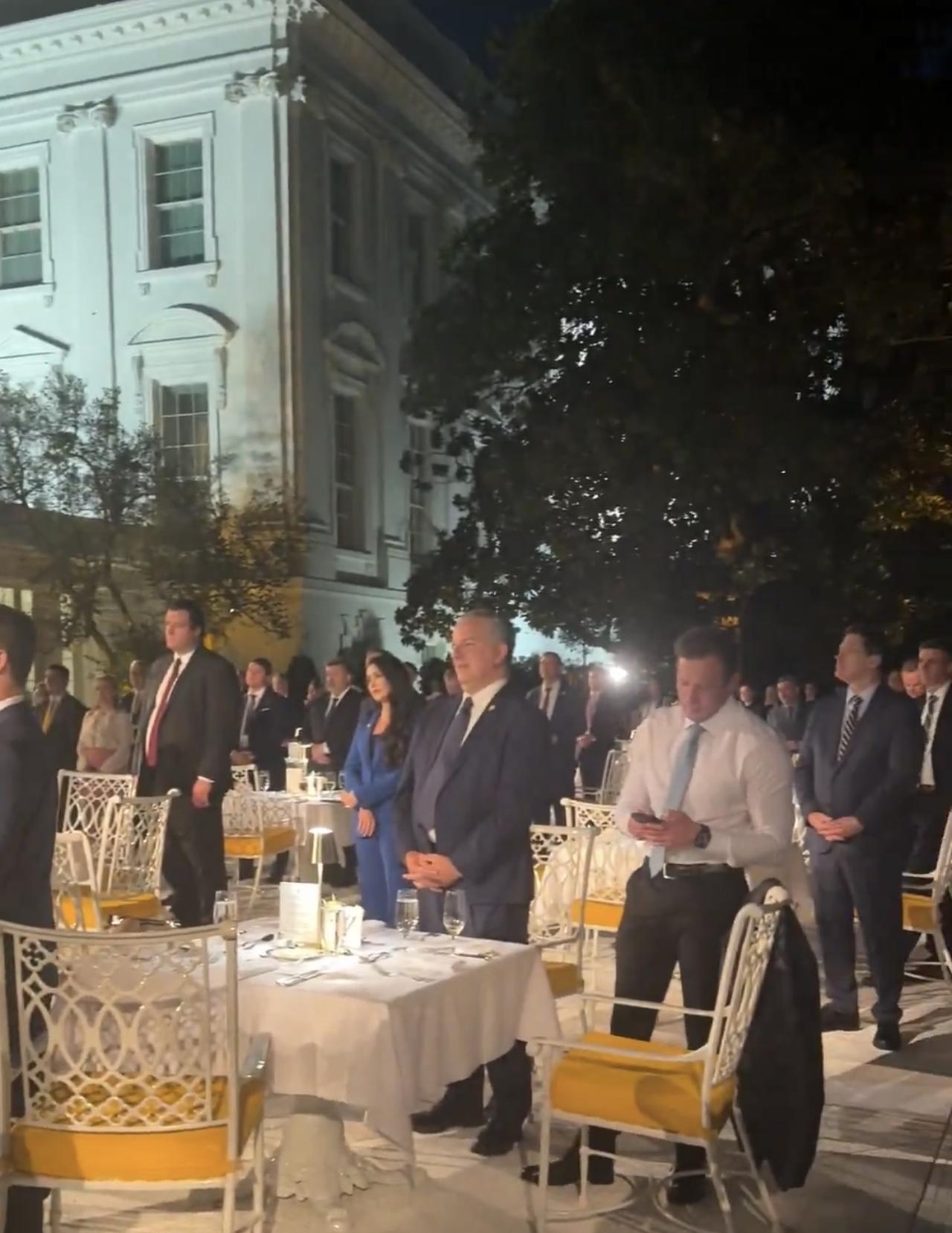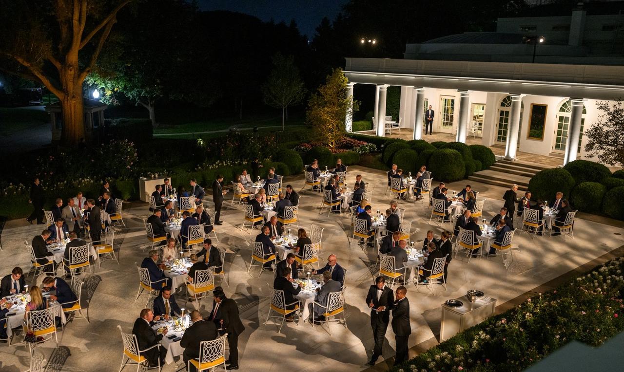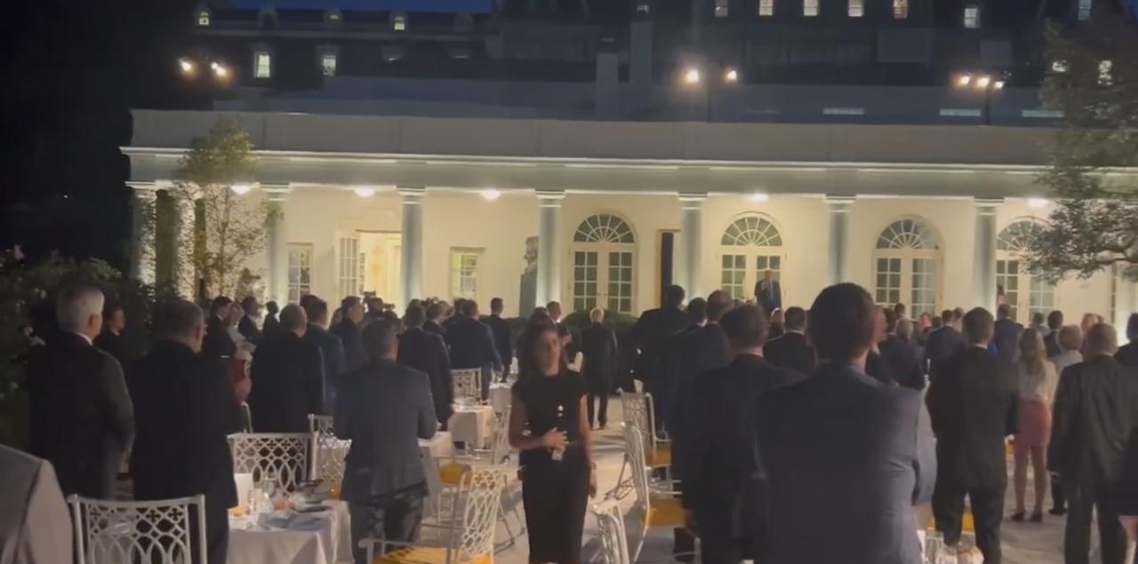 盛大开幕!玫瑰园俱乐部 当地时间周五晚上,特朗普在新装修完工的玫瑰园(玫瑰园已铲