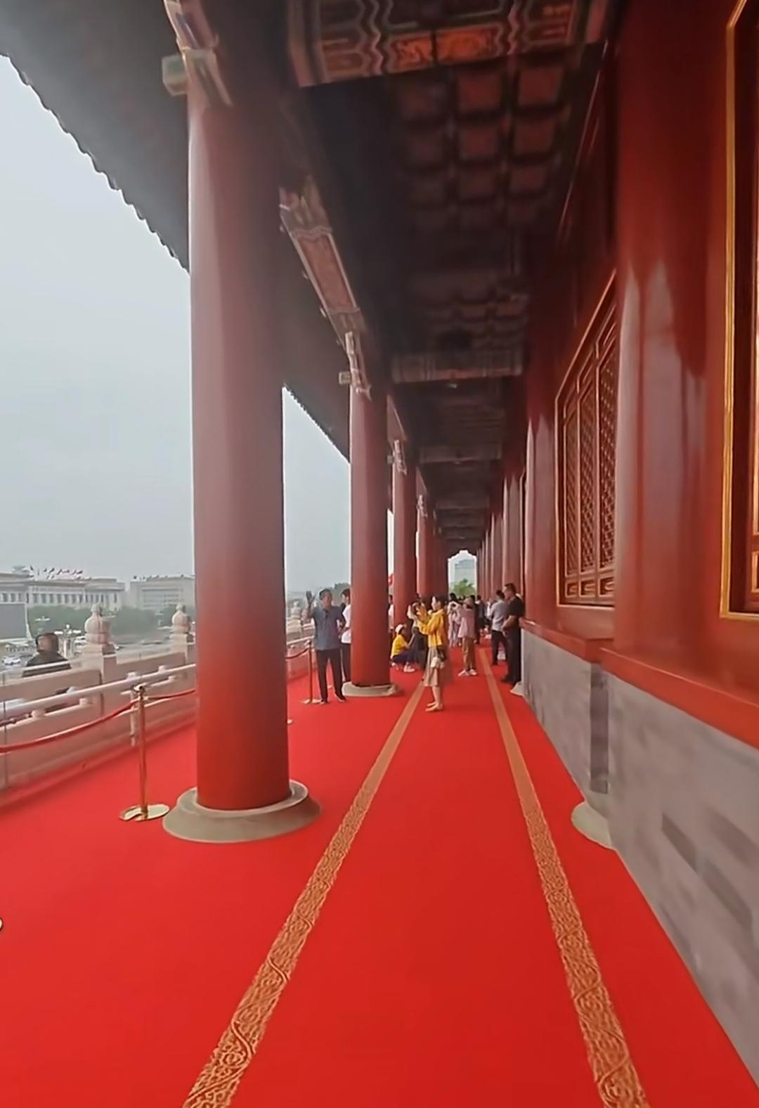 阅兵结束后,天安门城楼很快恢复了对游客开放! 出于保护目的,客流量会有所限流,所以等待时间有点长,我们当天大约排了四个小时左右。 我觉得非常值得! 现在的天安门城楼是解放后重新修建的,但它的历史可以追溯到明永乐十八年,也就是公元1420年,距今已有605年的历史了。 最初叫“承天门”,寓意“承天启运”。由于雷击和战乱几次被毁。 到了清朝顺治八年,也就是公元1651年,重建后更名为“天安门”,取“受命于天,安邦治国”之意。 因结构老化和地震损伤,1969年开始拆除重建。 也就是现在我们看到的样子! 纵观历史,也只有这个时代,我们一个普通百姓可以登上天安门城楼,能赶上这样的盛世,多么自豪和幸运啊!