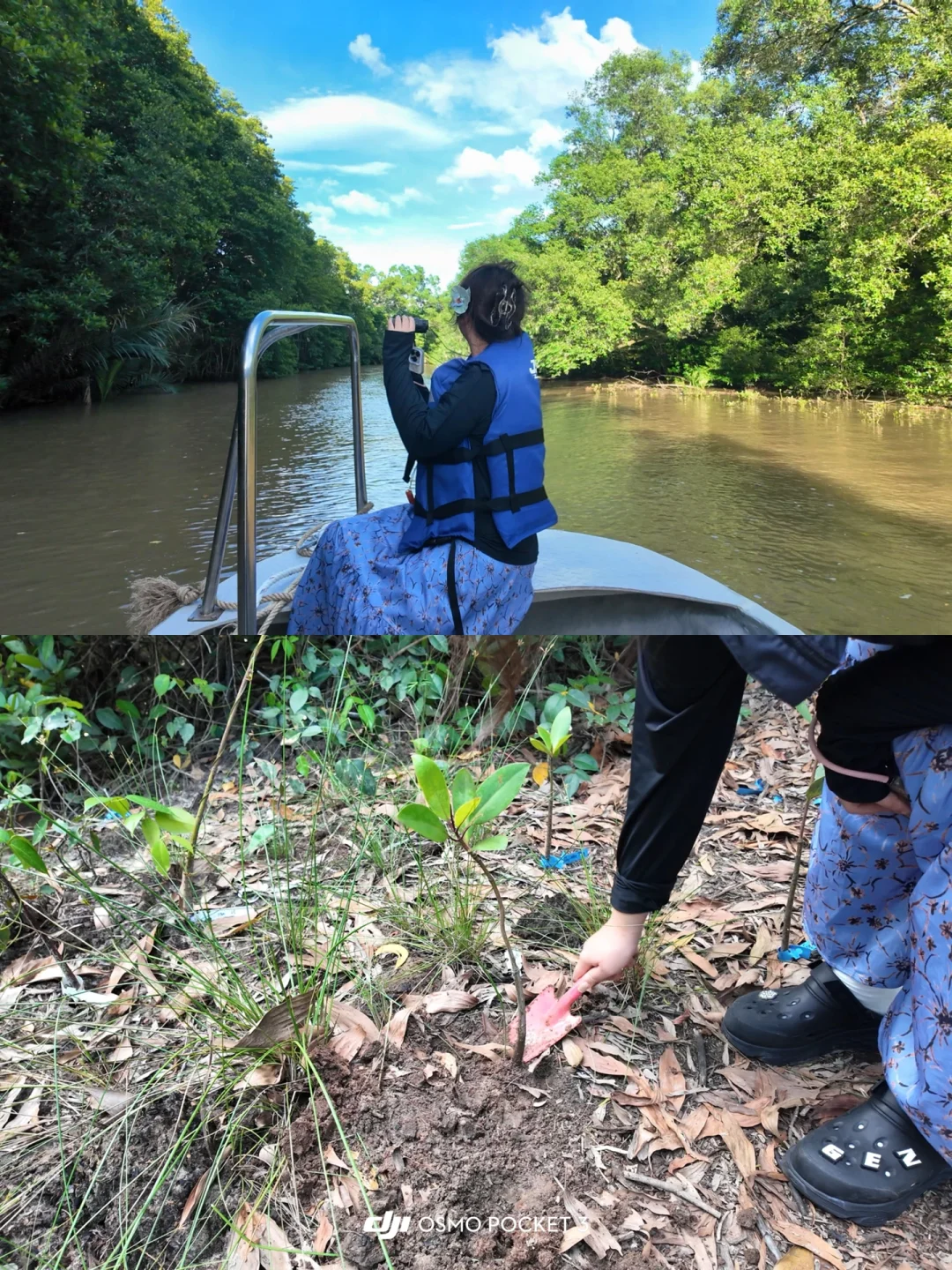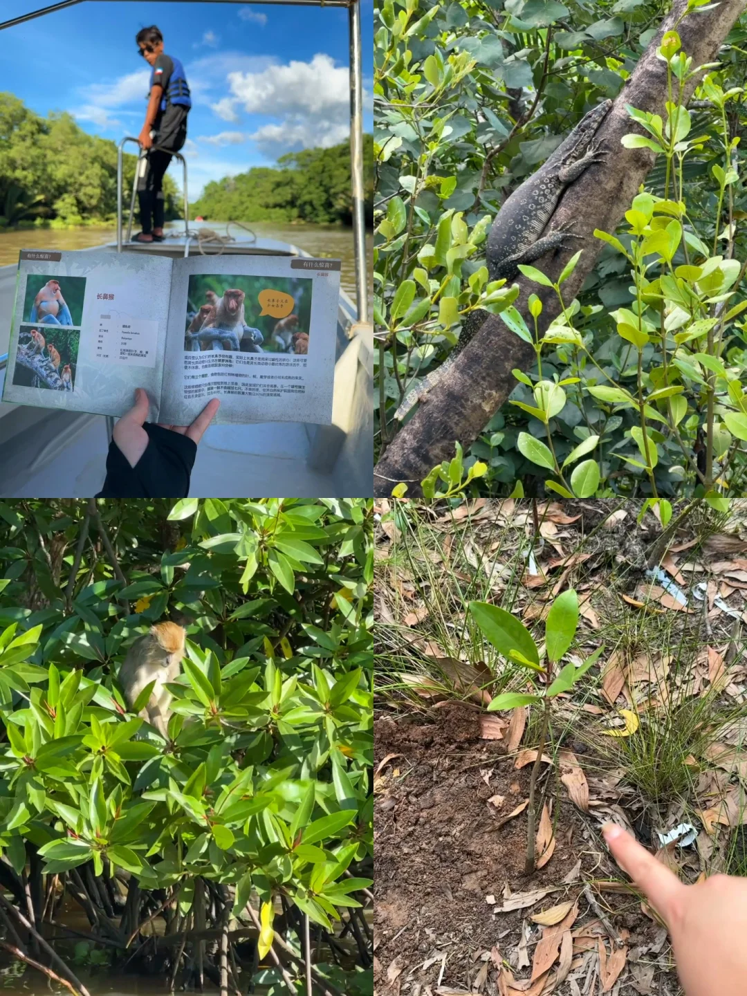 向导准备了望远镜和动物手册,不过看长鼻猴需要一定的运气。登陆红树林后介绍动植物和生态环境,我种下一颗小树苗标记上名字,以后会将它的生长情况📧给我。