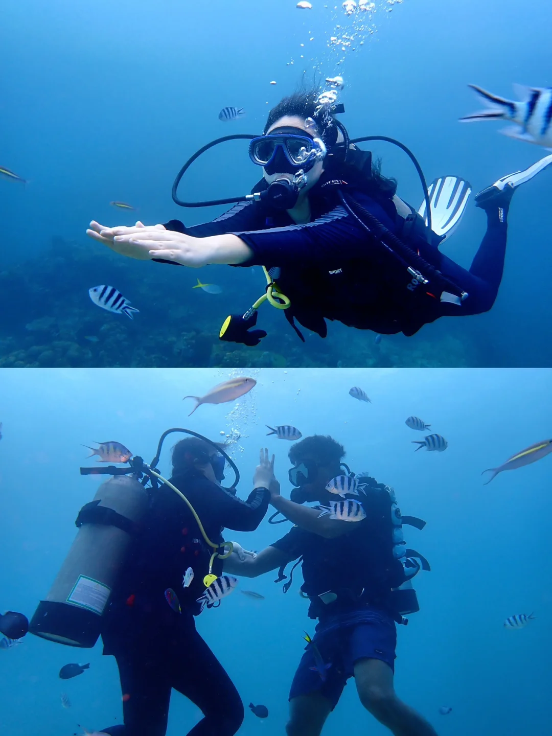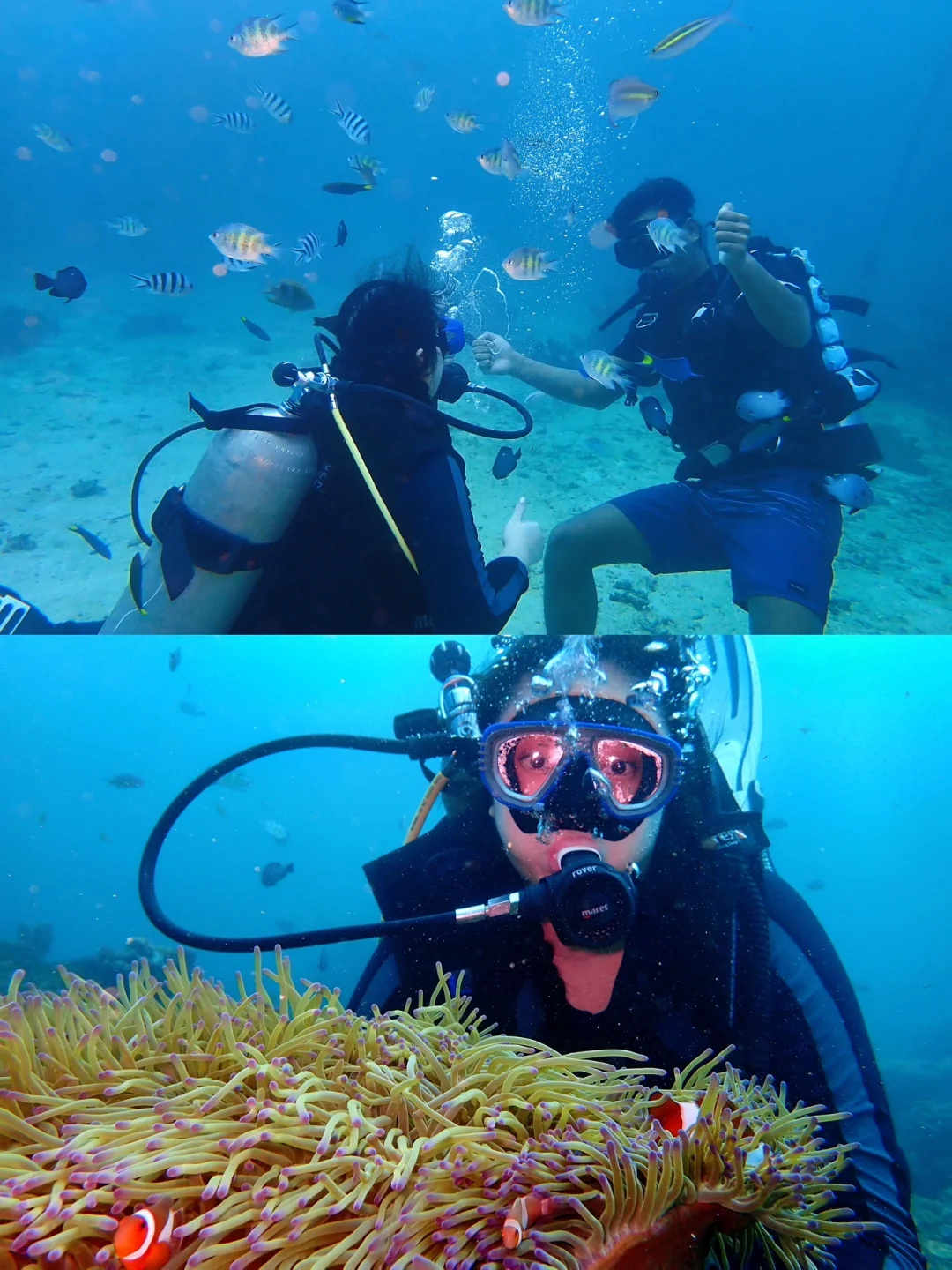 在这里夸夸我的教练Joel,超级棒👍既耐心又幽默。刚下水时很紧张,他一直帮我调整状态。三个教练在水下围着我kuku拍,带我在海底世界看到很多小生物,真的是很难忘的体验!