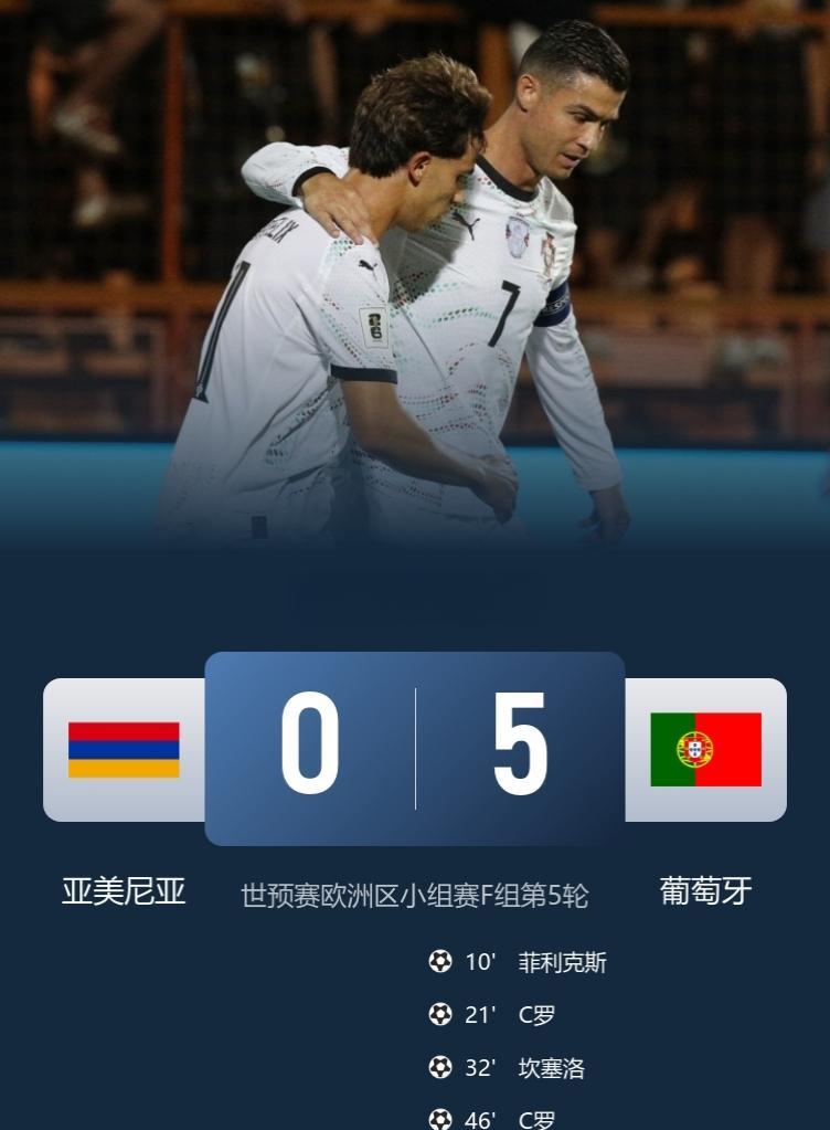 世预赛-葡萄牙5-0亚美尼亚取得开门红! 此役,C罗双响+暴力世界波,菲利克斯双响,利雅得胜利锋线包办4球,沙特超球员包办5球!