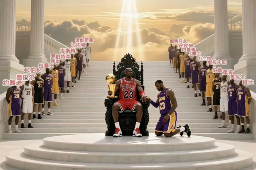 阿柠 3 2025-09-08 17:52 其他我都懂,为何除了乔丹都是湖人球衣。 RefereeofFinalG4 回复 09-09 13:35 AI合成,表达的意思能让你看懂就行 8级小狂风 回复 RefereeofFinalG4 09-09 21:25 一看就是科密合的!科比能排这么前?哦,在中国拍第二。