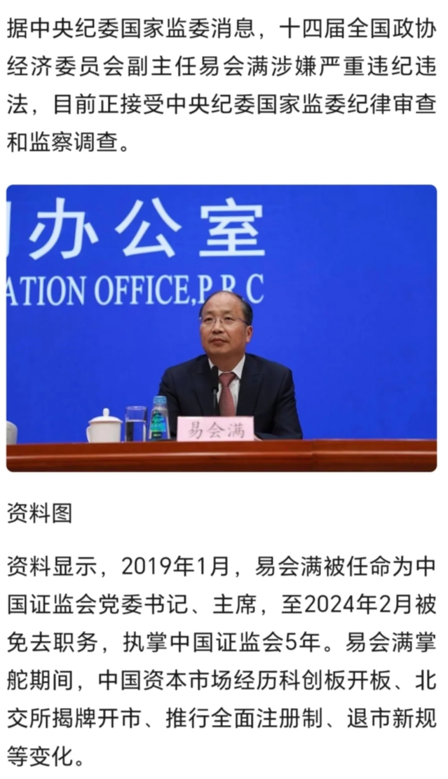 易会满这家伙终于出事了,在任时说坚决消除监管真空,结果就是说一套做一套,很多的股民都被他坑惨了!这次就让他在牢狱里坐享易会满吧!