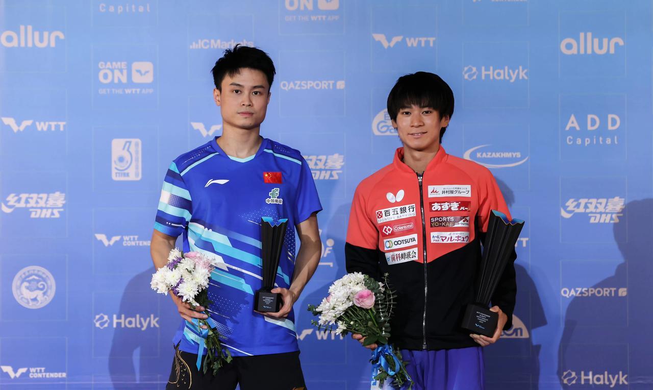 阿拉木图站六张颁奖图, 国乒只获得两冠四亚, 而日本获得三冠一亚。 看总数是我们