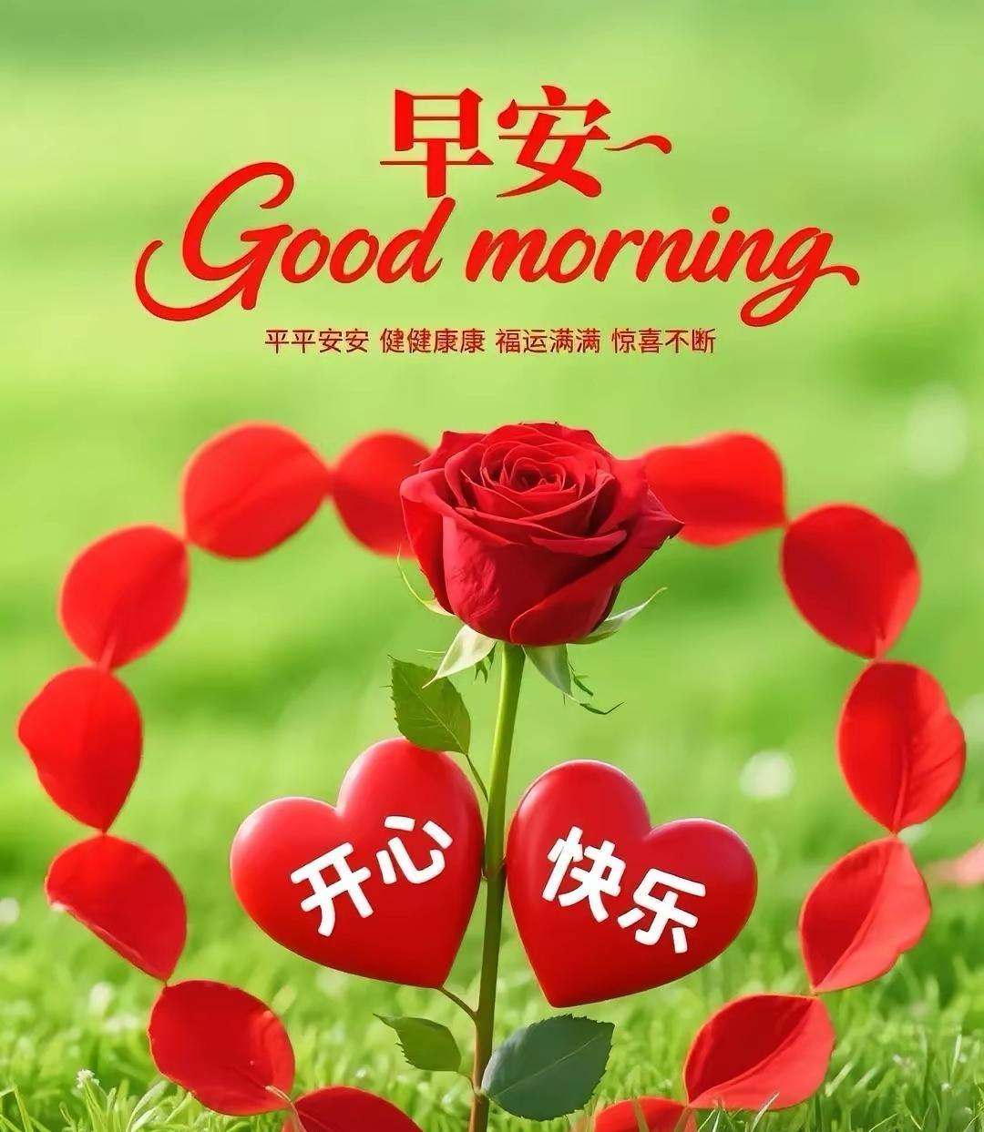 秋高气爽枫叶红 清晨梦醒乐融融 晨起锻炼多运动 渔舟撒网江流中 晨光熹微晨清凉 喜鹊高鸣树枝上 秋收在望景色好 田野花香伴吉祥 清晨轩窗洒曙光 祝福友友不能忘 真情实意暖人心 牵挂惦记令人暖 每天都是新起航 前途似锦满阳光 但愿每日皆顺利 平安喜乐身健康