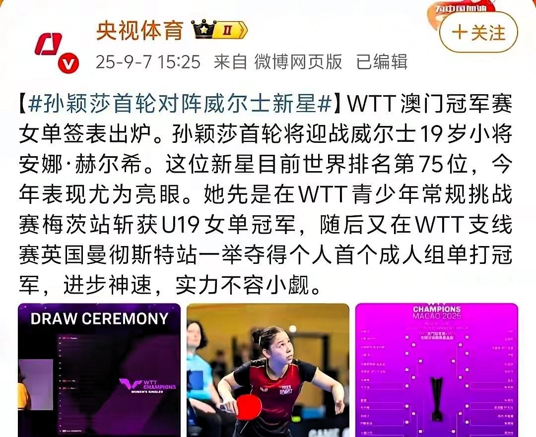 本来以为莎莎首轮对手很弱, 有点名不见经传的意思, 万万没想到, 这个安娜不一般! 排名固然重要, 但是对于新手来讲, 她需要一步一步打上来, 不可能一下子打到前面。 这个安娜就是这样, 目前她的排名没有优势, 但是她的水平不可小觑! 央妈都提醒莎莎注意了, 安娜入选巴奥女单名单, 当时她只有18岁, 今年以来安娜状态火热, 拿过WTT支线赛女单冠军! 网友的分析挺到位, 每次有新手怪球手, 都会跟莎莎来一场遭遇战。 我想说的是, 咱不抱怨不委屈, 莎莎的使命就是啃硬骨头, 逢山开路, 遇水搭桥! 莎莎解题经验丰富, 连国乒11连输的桥本都赢了, 所以管她安娜是谁, 一定会给她买好机票!