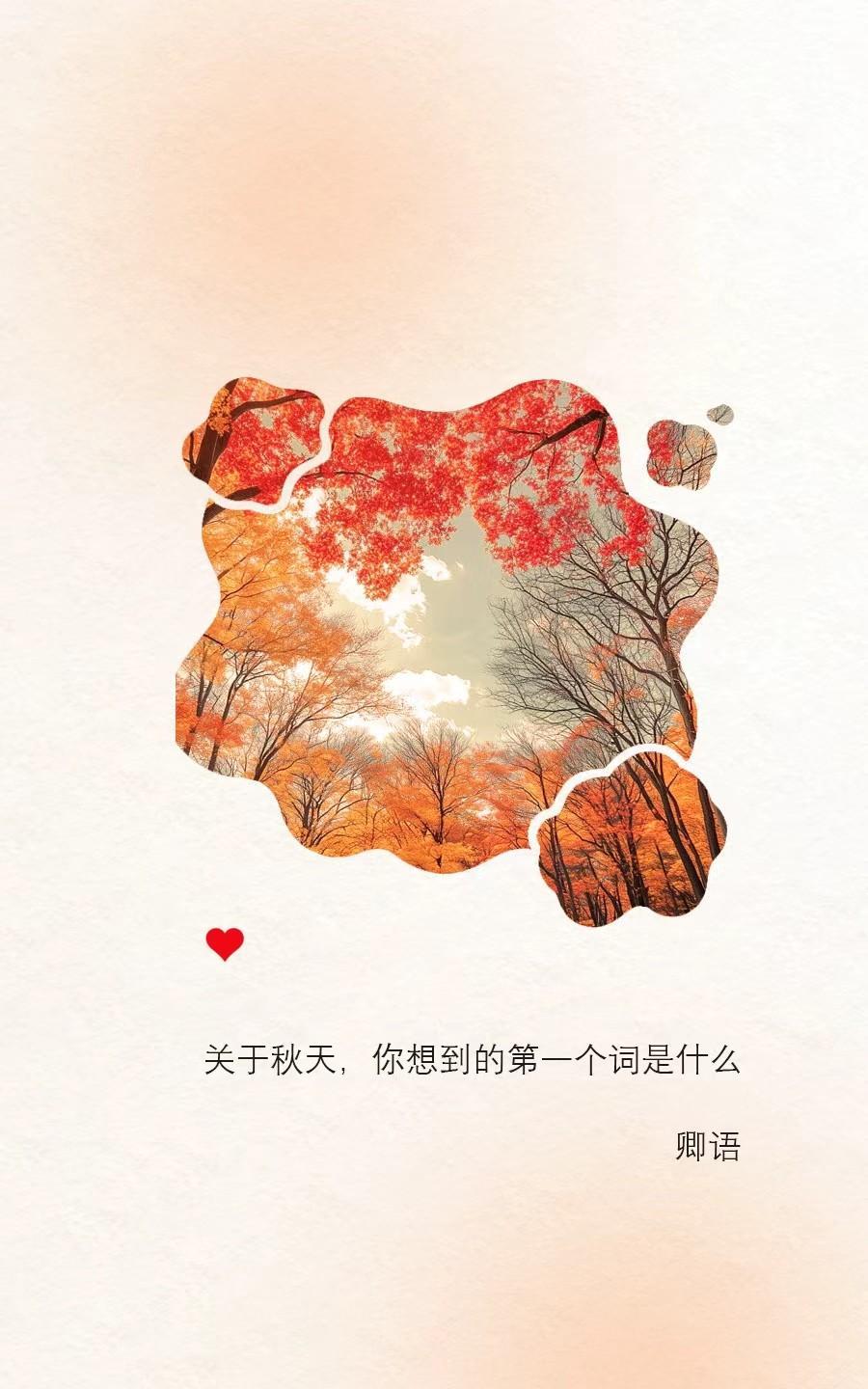 他们说 秋天很美 美的就像一个形容词 可我总觉得 在秋天这个季节里, 好像藏了很多柔软的心事, 微凉的天气,迟缓的落日, 落寞的长椅,枯黄的草地, 还有昨夜的悄然风起, 吹落了满院的梧桐叶子, 一切的一切, 好像是在等一场重逢, 又好像是在念一场别离…… 《秋天的心事》文/卿语 [比心]遇见文字,遇见美好,记得关注哦~