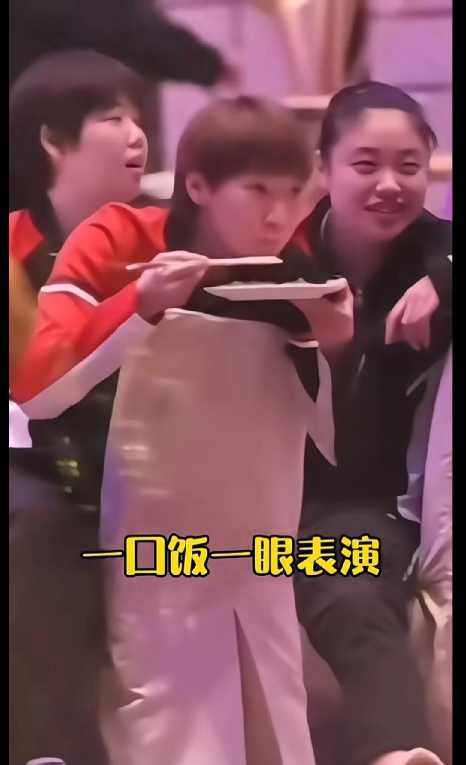 澳门冠军赛晚宴现场太有趣啦!王曼昱沉浸式干饭,一口饭一眼表演,吃得那叫一个香~旁