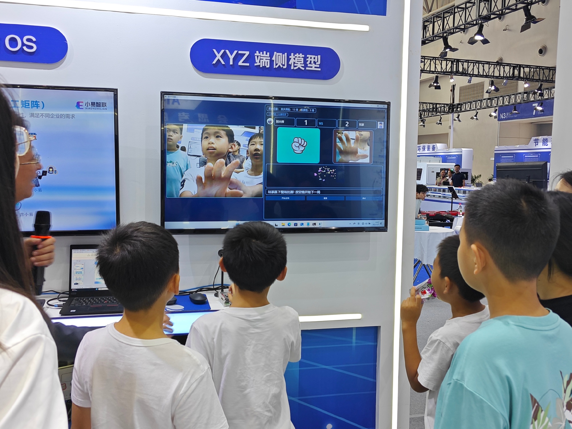 #2025智博会#在智博会上和机器人猜拳,还都猜输了,这种体验你试过吗?简直太绝了。这个猜拳游戏背后可不简单,它是基于#小易智联#的XYZ端侧AI模型研发的,实时捕捉人类出拳的微动作,并且自主进行预测,直观的印证了 XYZ 的自主智能闭环能力。在智博会上难得的重庆本土做人工智能的企业,他们的XYZ端侧AI模型和小易 AGI 营销中心很有前景,现在了解的人络绎不绝。