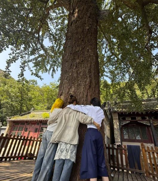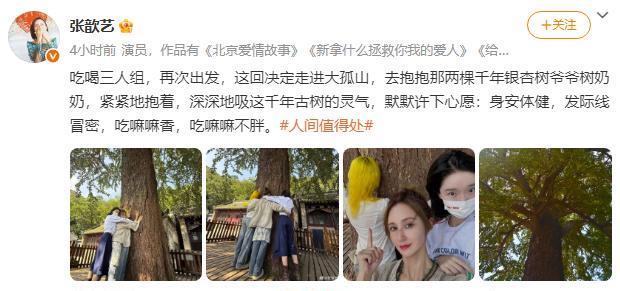 被张歆艺的心愿给笑到了。 近日,张歆艺吃喝三人组再次出发,遇到一棵千年银杏树开始